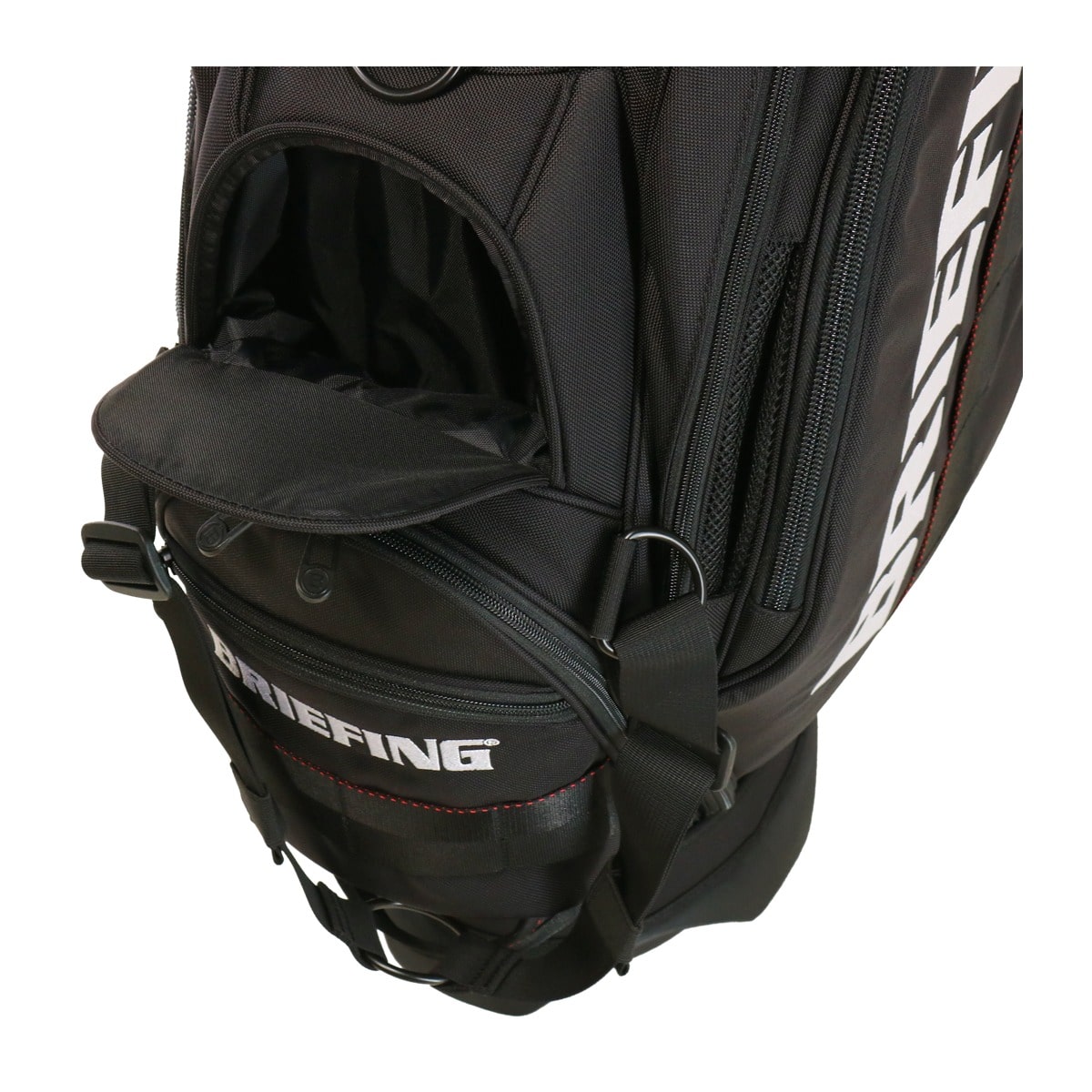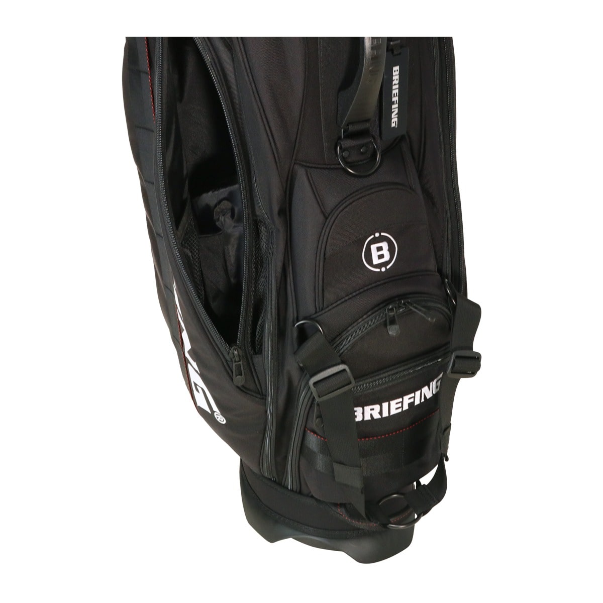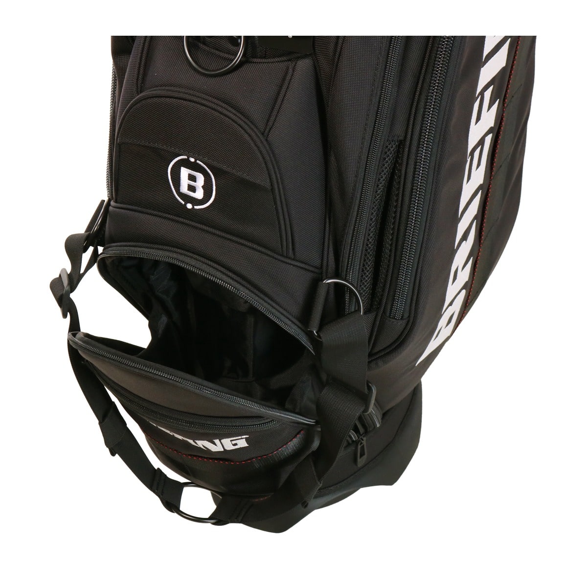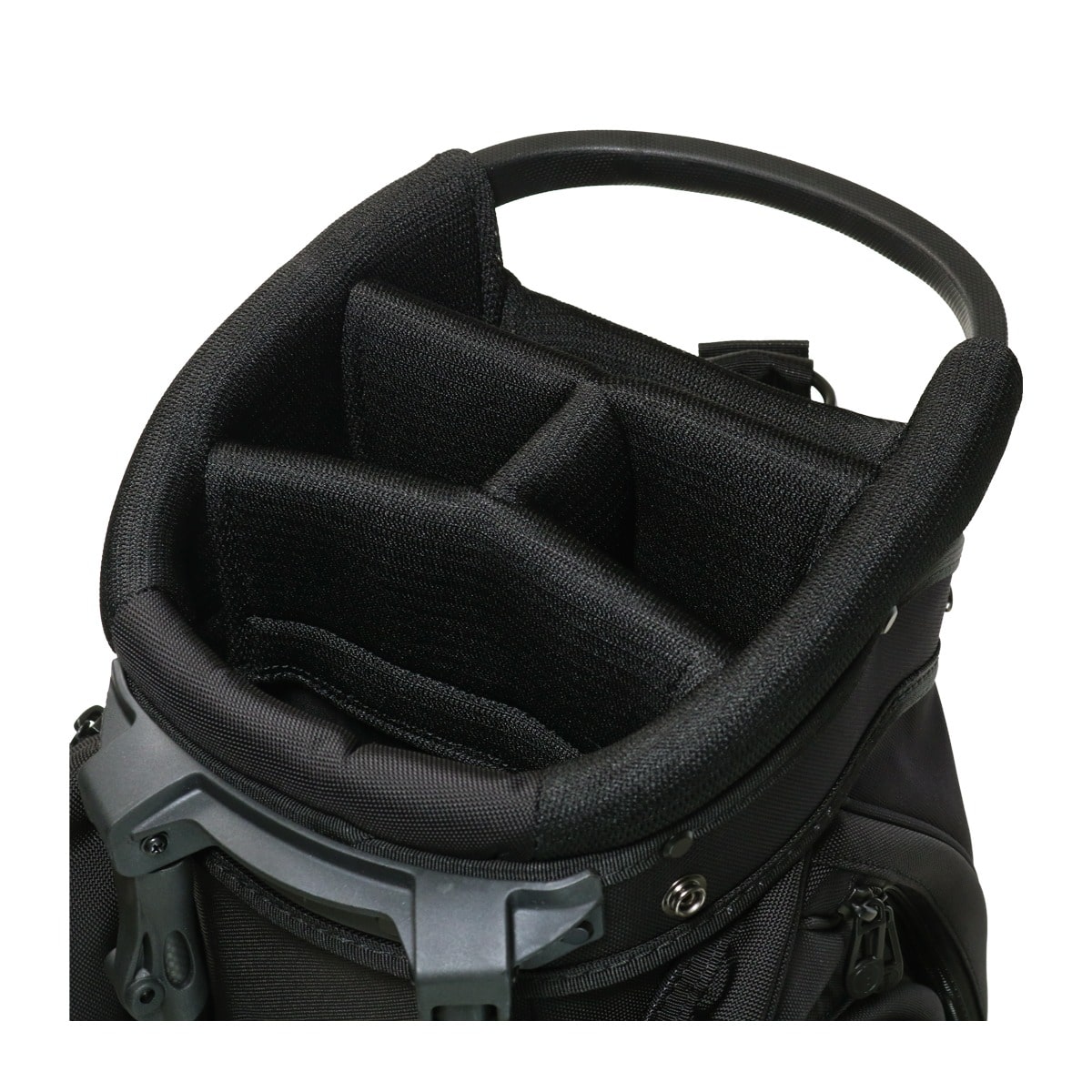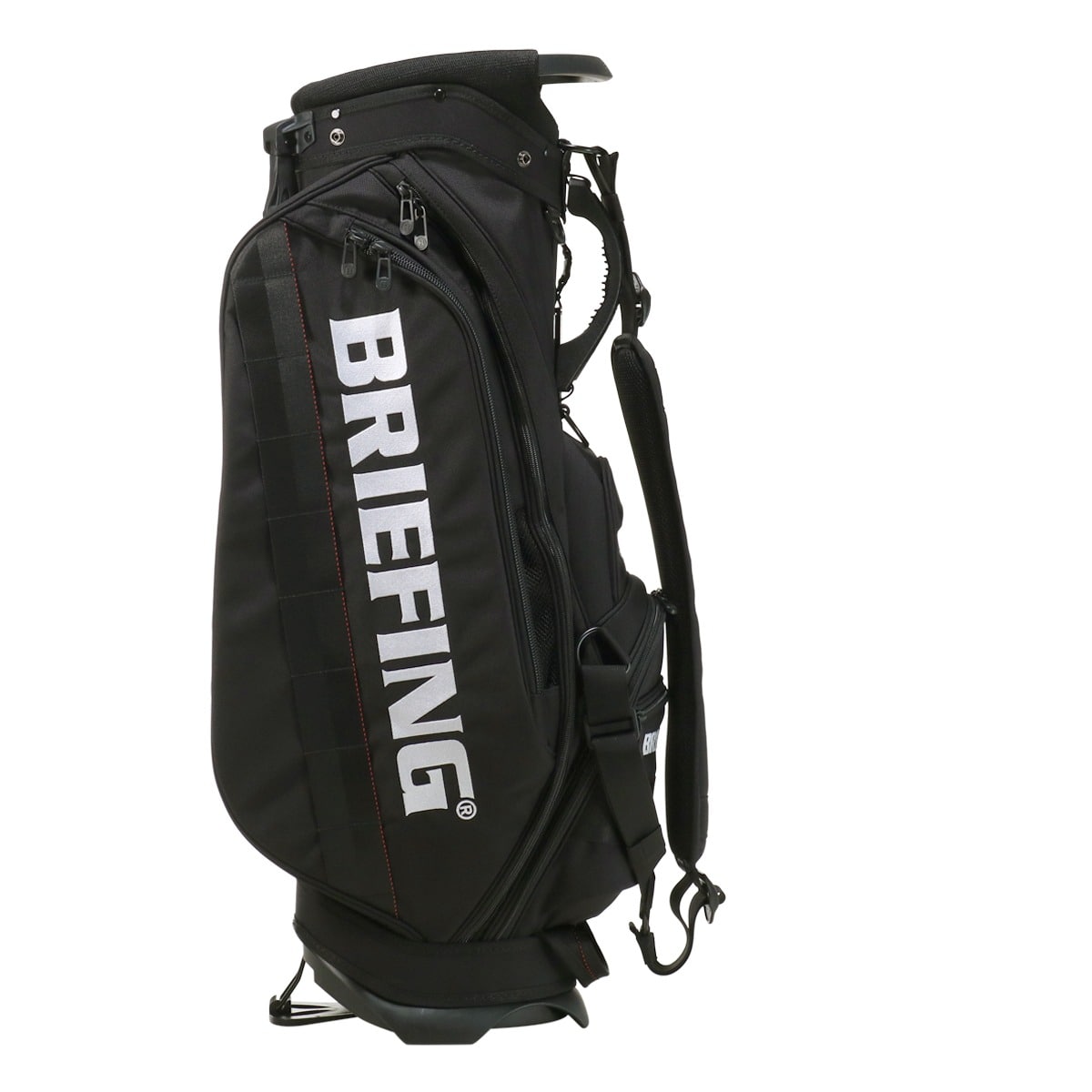 備考:キャディバッグをクラブ・アクセサリー等収納物を入れた状態で立てる時は、倒れる恐れがありますので十分にご注意ください。キャディバッグは、車のトランク内等で横にしたまま長時間上に重い物を載せたり、強く押さえたりしますと変形する恐れがありますのでご注意下さい。本体生地、テープ等の色落ちについては、十分に注意しておりますが、水・汗・摩擦などの諸条件による色落ちを完全に防止することは出来ません。バッグが濡れたまま又は、濡れた物を収納したまま長時間使用されますと衣服や収納物にバッグの色移りが発生する場合があります。