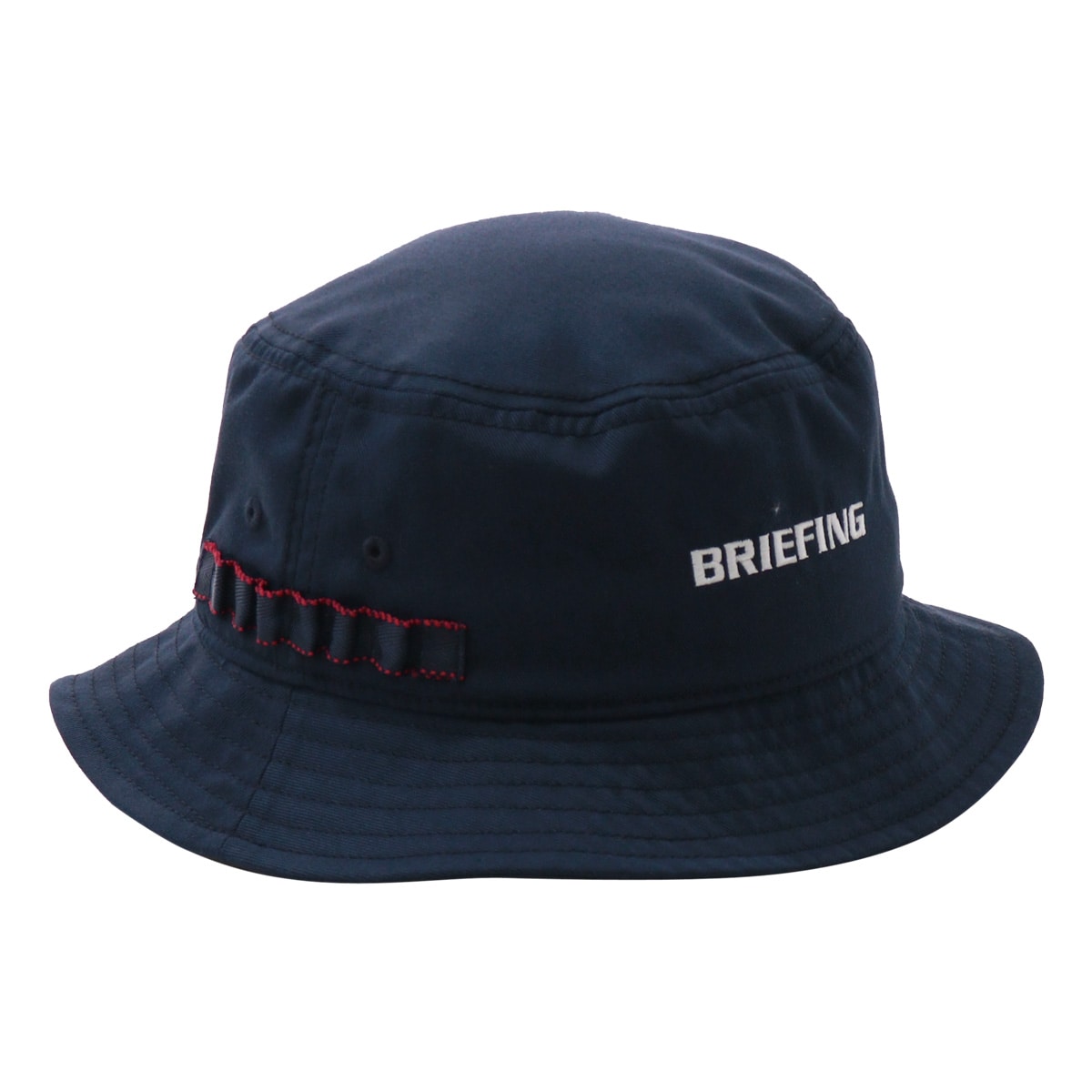 ポリエステル×コットンの混紡生地をメインに使用。洗濯等での縮みやシワに耐性があるポリエステルの良さに、コットンならではの風合いや肌当たりの柔らかさ、通気性を併せ持ち、アクティブなシーンでも快適にお使いいただけます。BRIEFINGロゴ刺繍を配したシンプルなデザインを採用。右サイドには、配色のステッチを施したナイロンテープをあしらい、さりげないアクセントとなるだけでなく、ラウンドの際にティーを刺しておくことも可能。