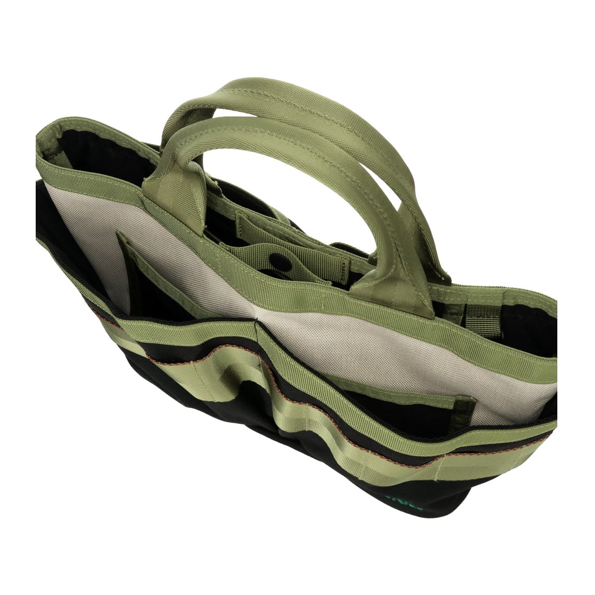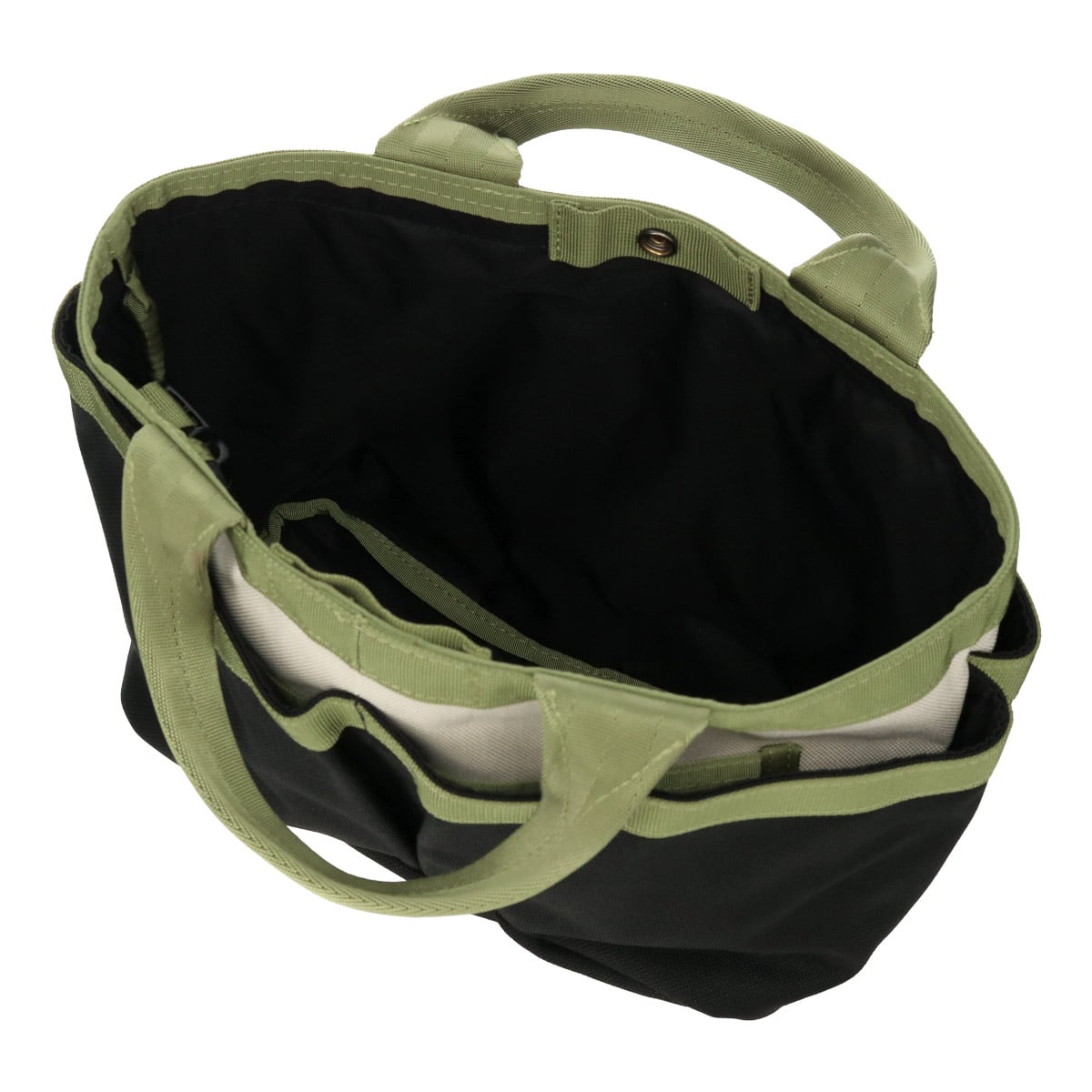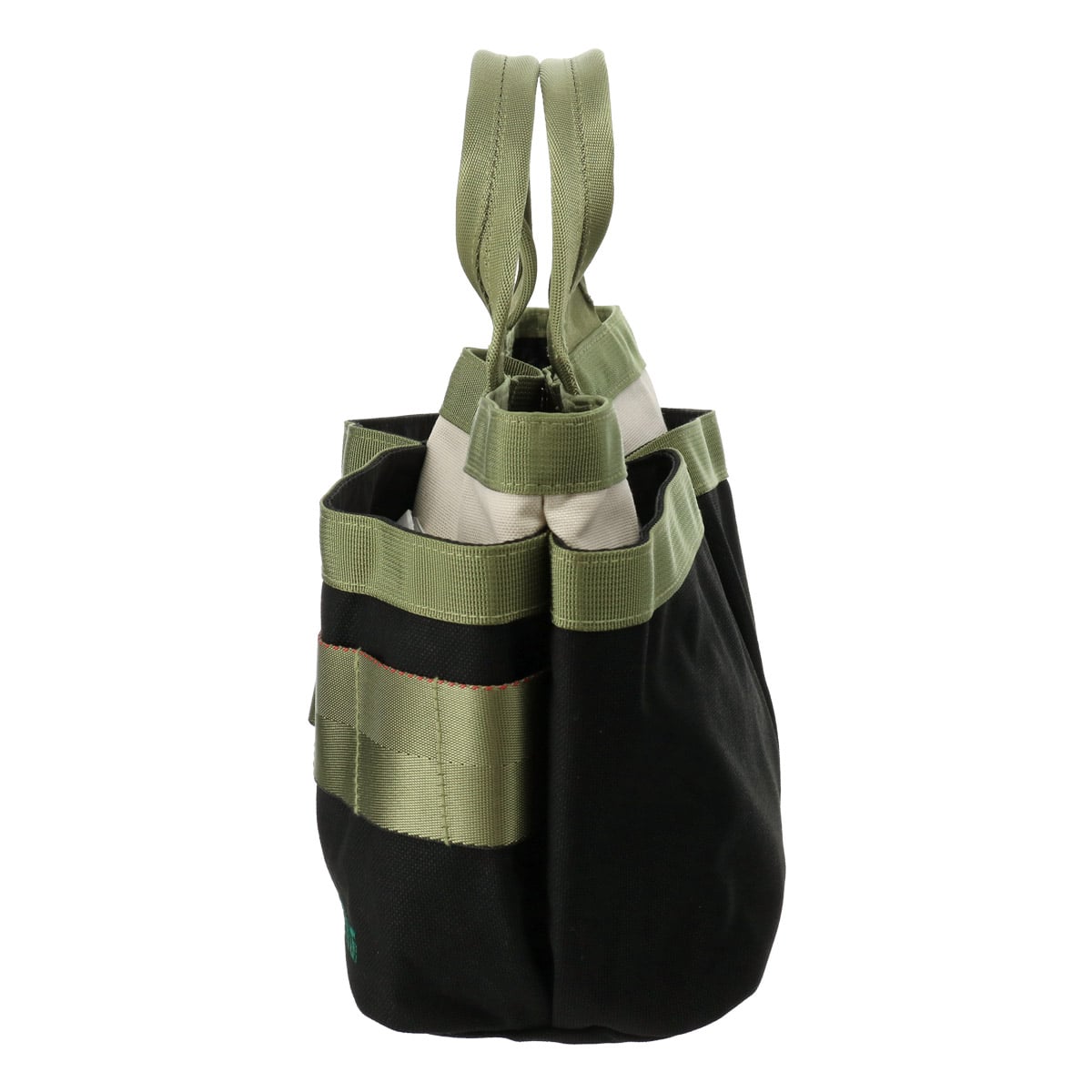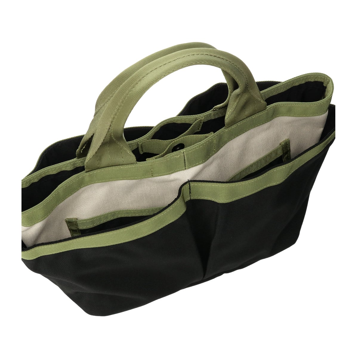 フロント、バックに配したBRIEFINGらしい立体的なポケットのデザインが特徴的な新型カートトートが特徴。デザイン性の高さはもちろん、ポケットの収納力を確保することで、コンパクトな見た目に反した収納力の高さも魅力。フォレストグリーンのロゴ刺繍とモスグリーンのテープ配置した「森」をイメージした、どこかアメリカンクラシックを思わせるルックスも魅力のアイテムです。【おすすめポイント】-強く型崩れしにくい素材-・「最も毛羽の少ない紡績糸」といわれ、毛羽や毛玉を抑える効果を持つ、「VORTEX(R)紡績」という最新の紡績技術を用いた糸に、CORDURAを組み合わせる事で、より丈夫で型崩れしにくい「VORTEX(R) CANVAS」をメイン素材に使用。-見た目以上の収納力-・マチをしっかりとったメイン収納部、内部にはポケットを1つ、着脱式キーホルダーを完備し、仕分け収納することが可能です。・フロント、バックそれぞれにアウトポケットを2か所ずつ配置。開口部にかけてゆとりを持たせた立体的なつくりのポケットが見た目以上の収納力を実現。