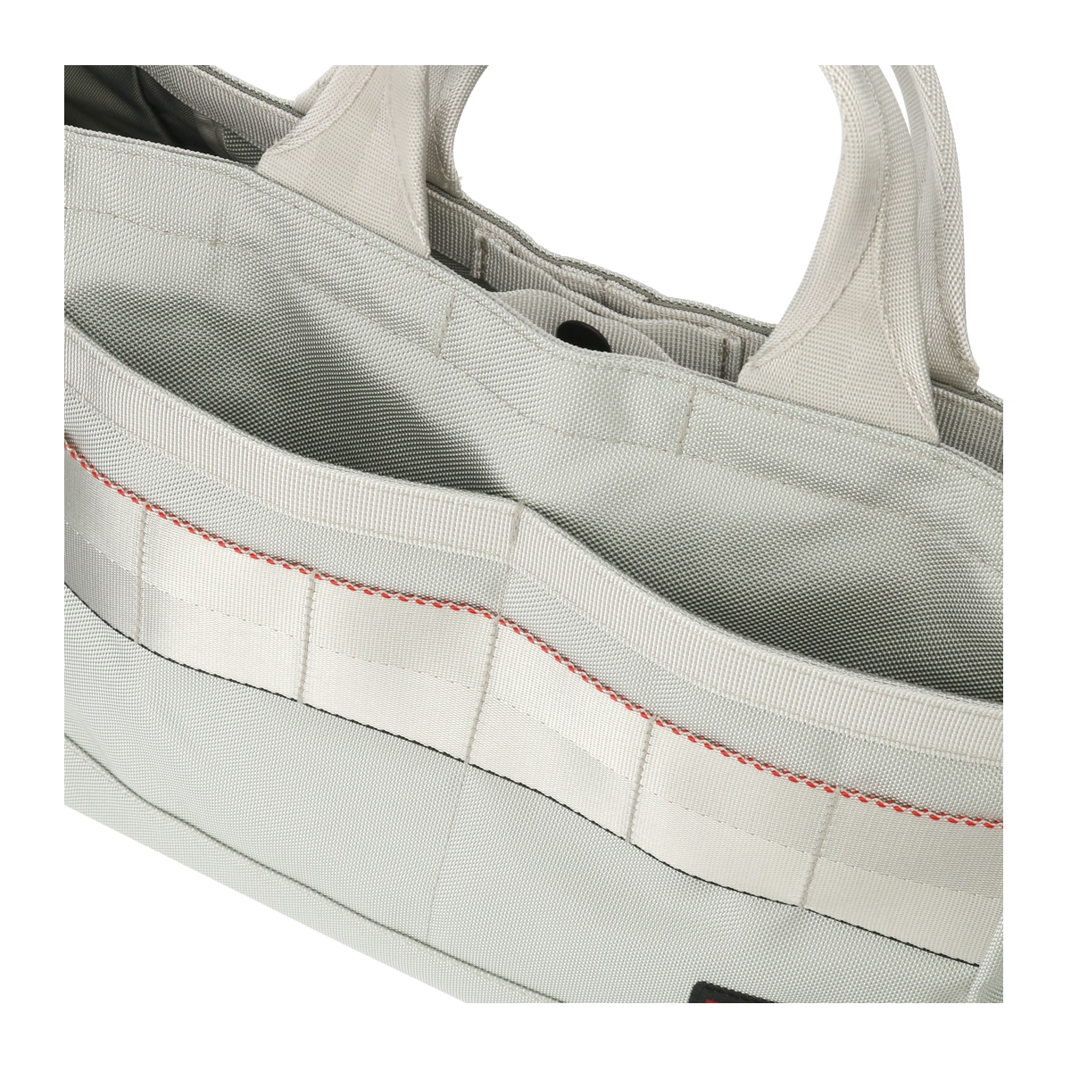 展開中のカートトートをサイズアップラウンド中に邪魔にならないサイジングにしながらも、使用頻度の高い小物類やドリンクなどをまとめて収納できるのはもちろん、軽装でゴルフを楽しまれる際は、これ一つでゴルフに行くことも可能とした十分な容量を確保しています。【オススメポイント】-軽量かつ強度にすぐれたメインファブリック-・中空構造の高強力糸を織り交ぜて強度を維持しながら、軽量化した素材を採用。優れた強度を維持しながらも非常に軽量な仕上がり。-十分な容量を確保-・ドリンクボトルに汗ふきタオルやスマートフォン、スコアカード等、たっぷり入れて膨らんでも安心のマチ幅。・内装には仕分け用のジップポケット、着脱式のキーホルダーを完備。・開口部は天蓋付きファスナートップ仕様で、中身が見えない構造にさらにはスナップボタンを配置し、荷物の容量感によって留め方を変えることが可能。・フロントにはスマホなどの収納に便利なポケットを完備。