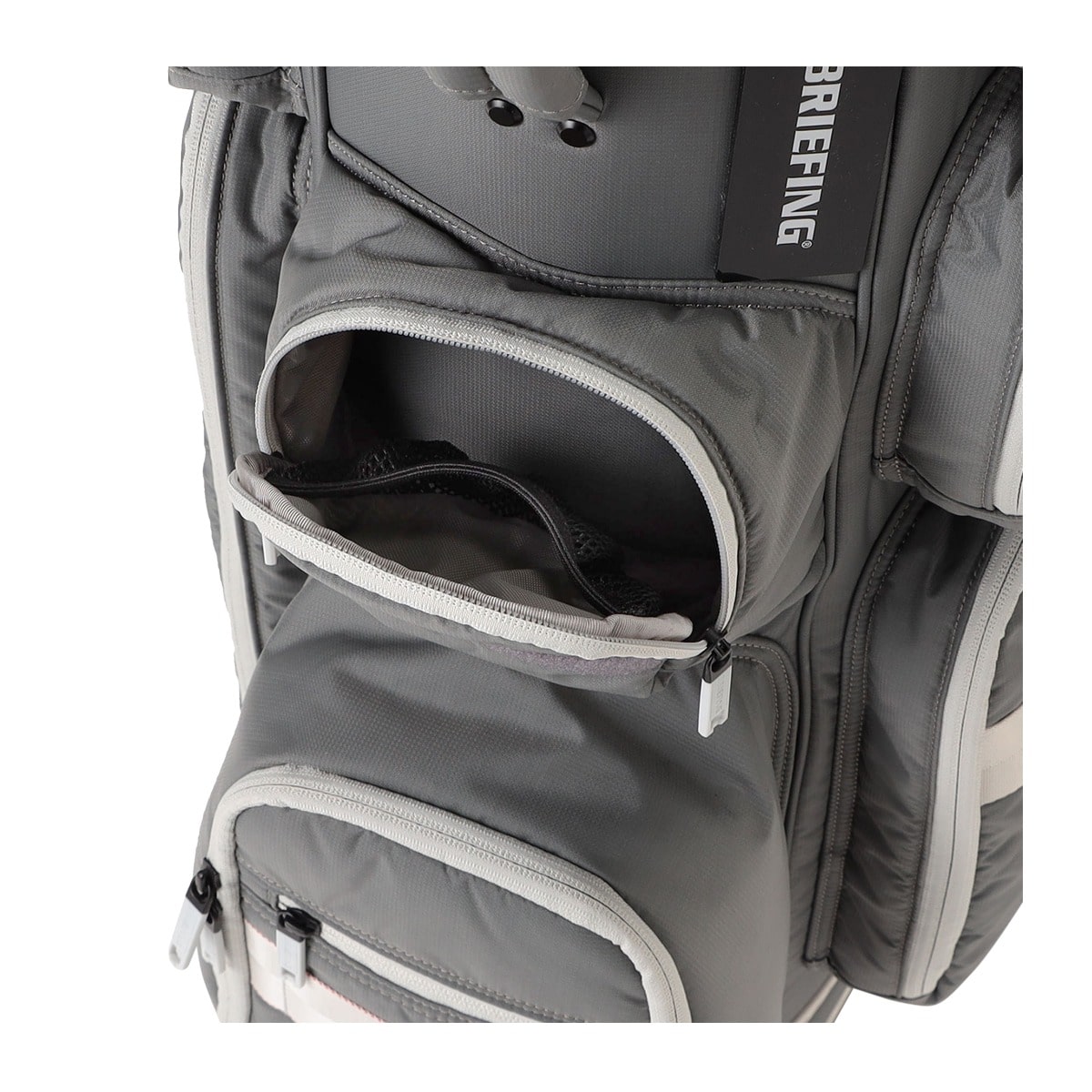 BRIEFING GOLFでは初となるキャスター付きのキャディバッグ。スマートなルックスと見た目以上の容量感はそのまままに、移動シーンをサポートする利便性の高いキャディバッグに仕上げました。