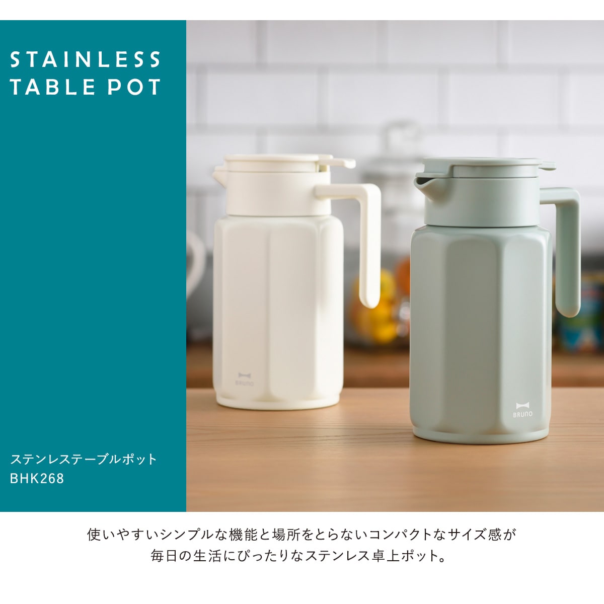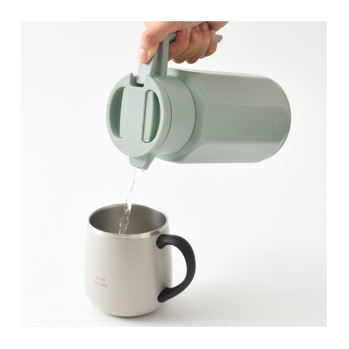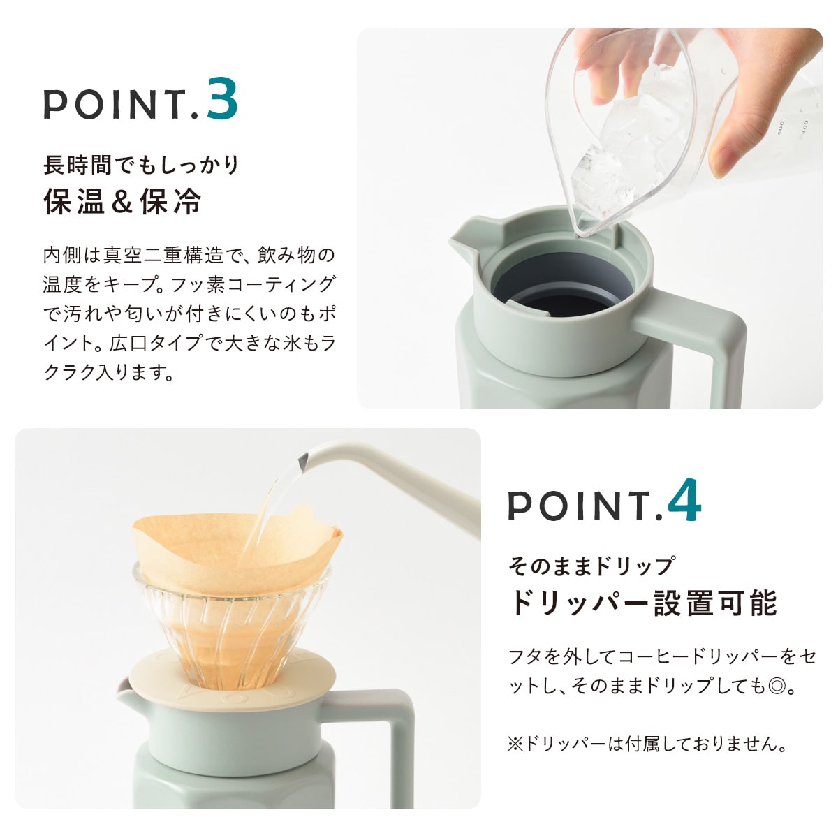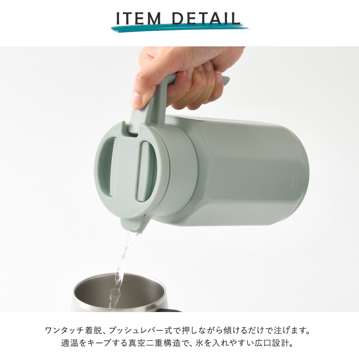 ワンタッチ着脱、プッシュレバー式で押しながら傾けるだけで注げます。内側フッ素加工で汚れやにおいがつくにくく、広口タイプフラットな開口部で使いやすい真空保温保冷ポット。