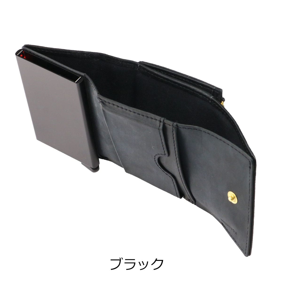 不正なカード情報の読み取り(スキミング)による被害から、カードを守ってくれるカードプロテクターを内蔵しています。また、レバーでカードが並んで出てくるギミックを搭載。お探しのカードを瞬時に取り出す事ができ、スムーズな決済が可能なウォレットです。