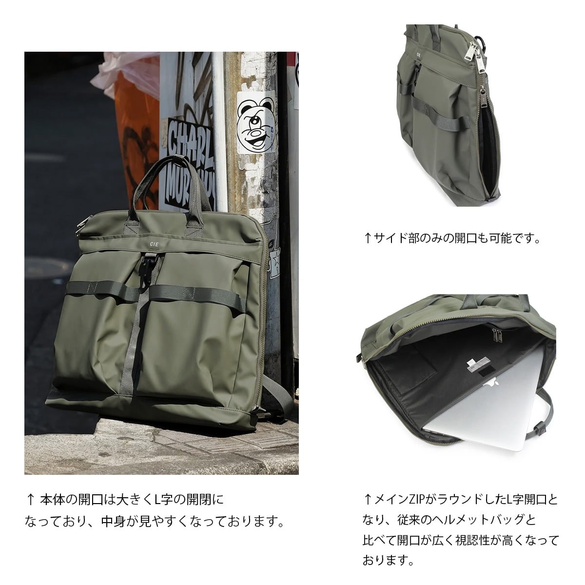 - > CIE シー トートバッグ B4 ショルダーバッグ ヘルメットバッグ ビジネスバッグ ビジネストート 15インチ ビジネスショルダー 2way 撥水 メンズ レディース 日本製 032071 GRID3 カジュアル ビジネス オフィス 会社 出勤 通学 学校 オリーブ