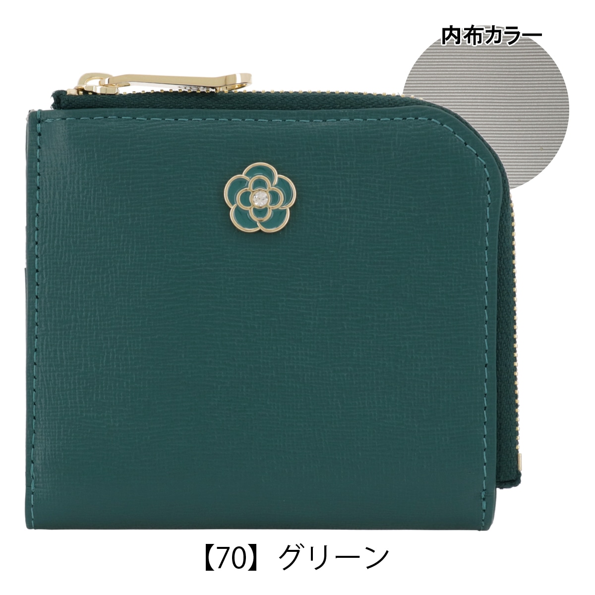 型押しの牛革にちょこんとしたかわいらしいエポのカメリアが付いたシリーズ。シンプルながらかわいい色目でアイキャッチに仕上げました。