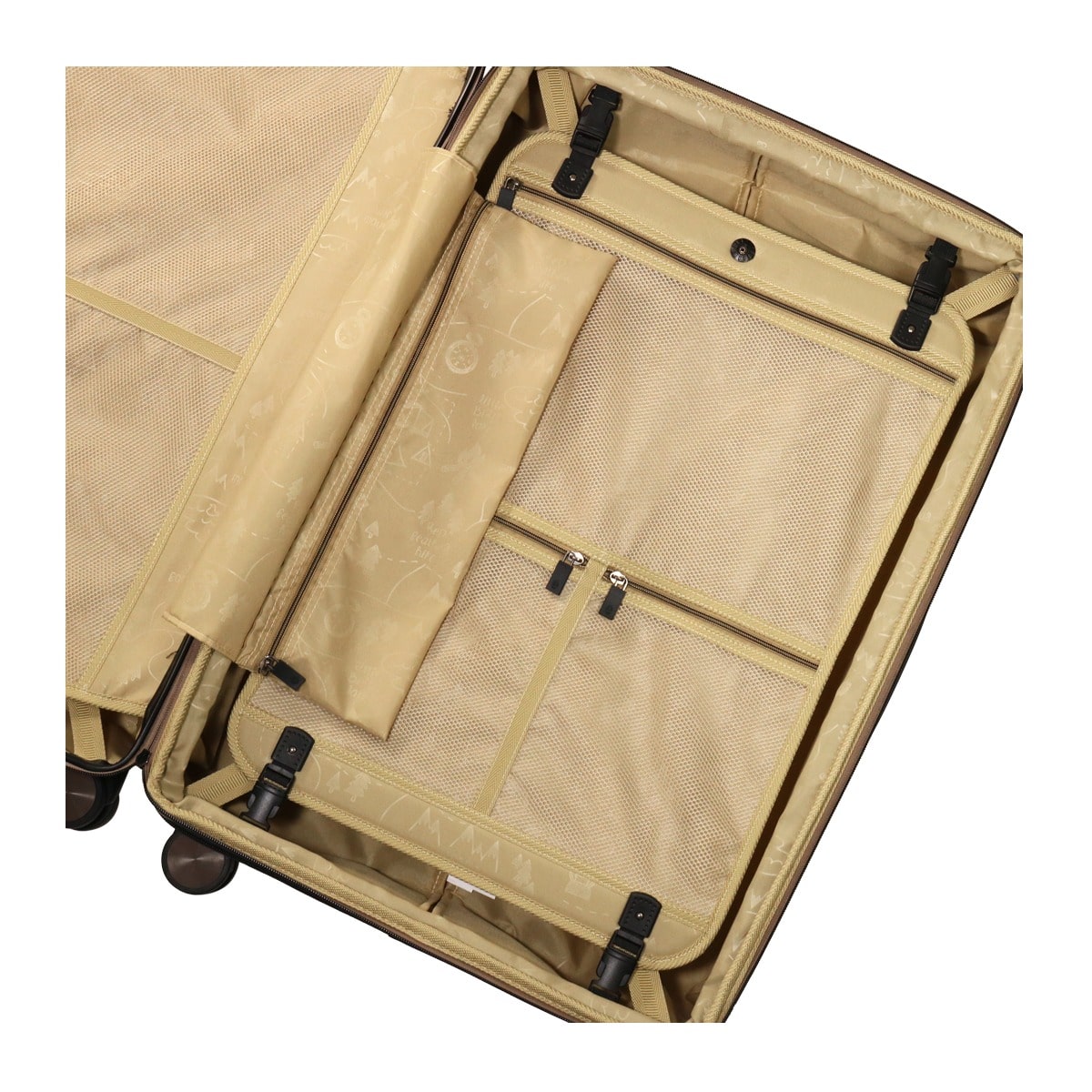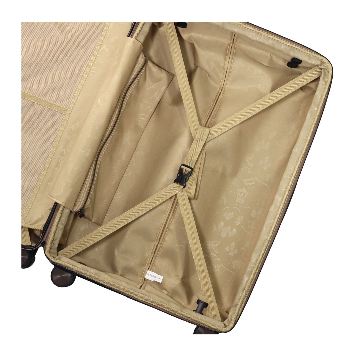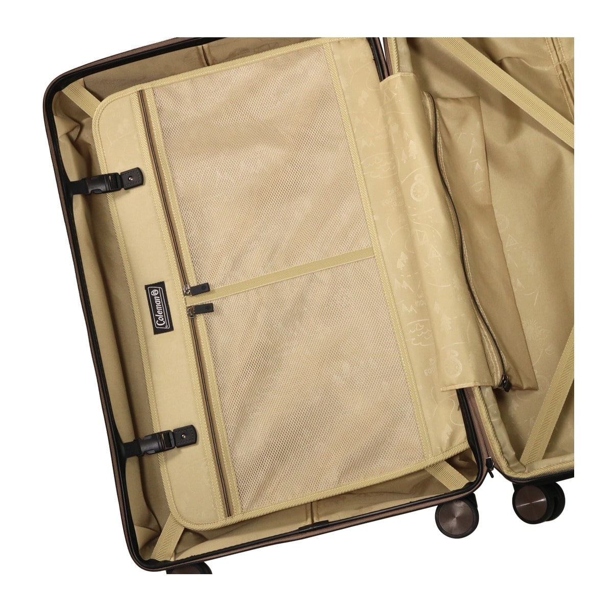 仕様:ファスナー式開閉内側:ファスナーメッシュポケット×2ファスナーポケット×1フック付きディバイダー仕切り×1(内側:ファスナーメッシュポケット×3)クロスベルト×2キャリーバー3段階調節可能TSAロック搭載4輪キャスター