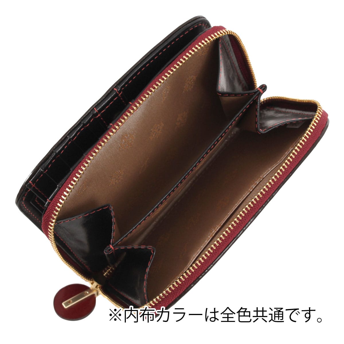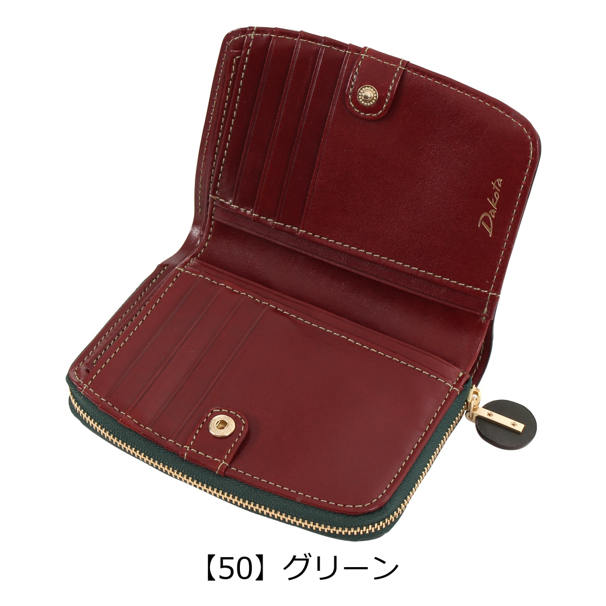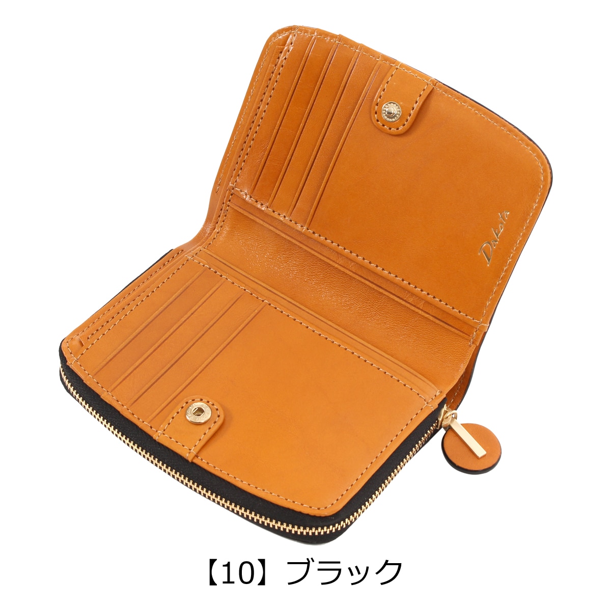 仕様:スナップボタン式開閉内側:札入れ×2ラウンドファスナー式小銭入れ×1(仕切り有り)フリーポケット×5カードポケット×8背面:フリーポケット×1