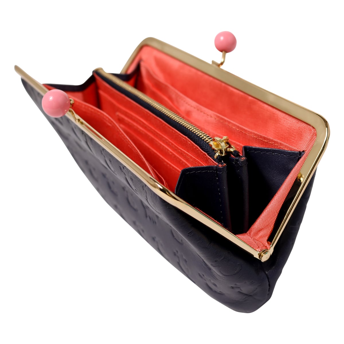 仕様:がま口式開閉内側:札入れ×2ファスナー小銭入れ×1カードポケット×14オープンポケット×3