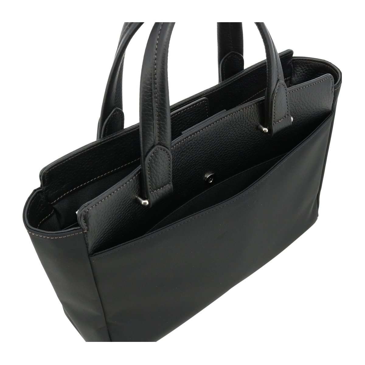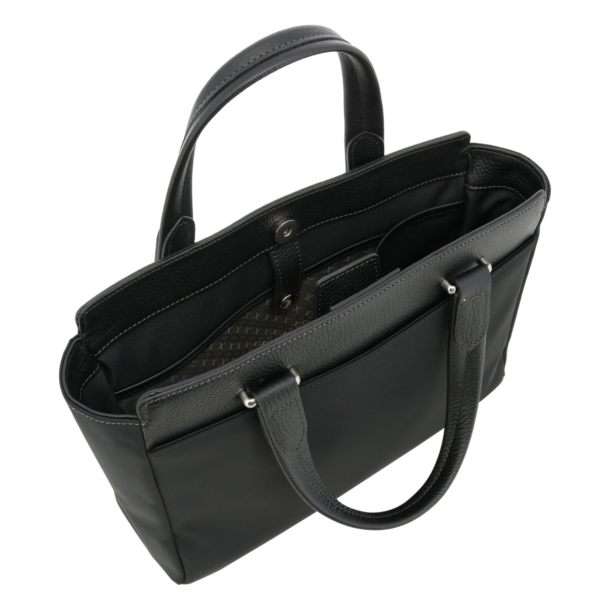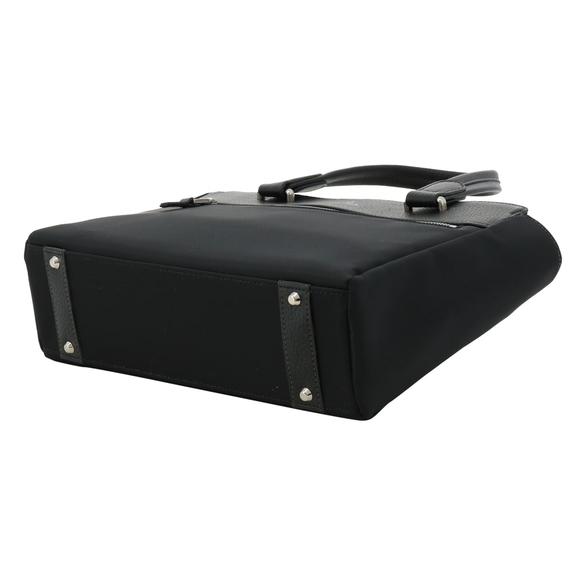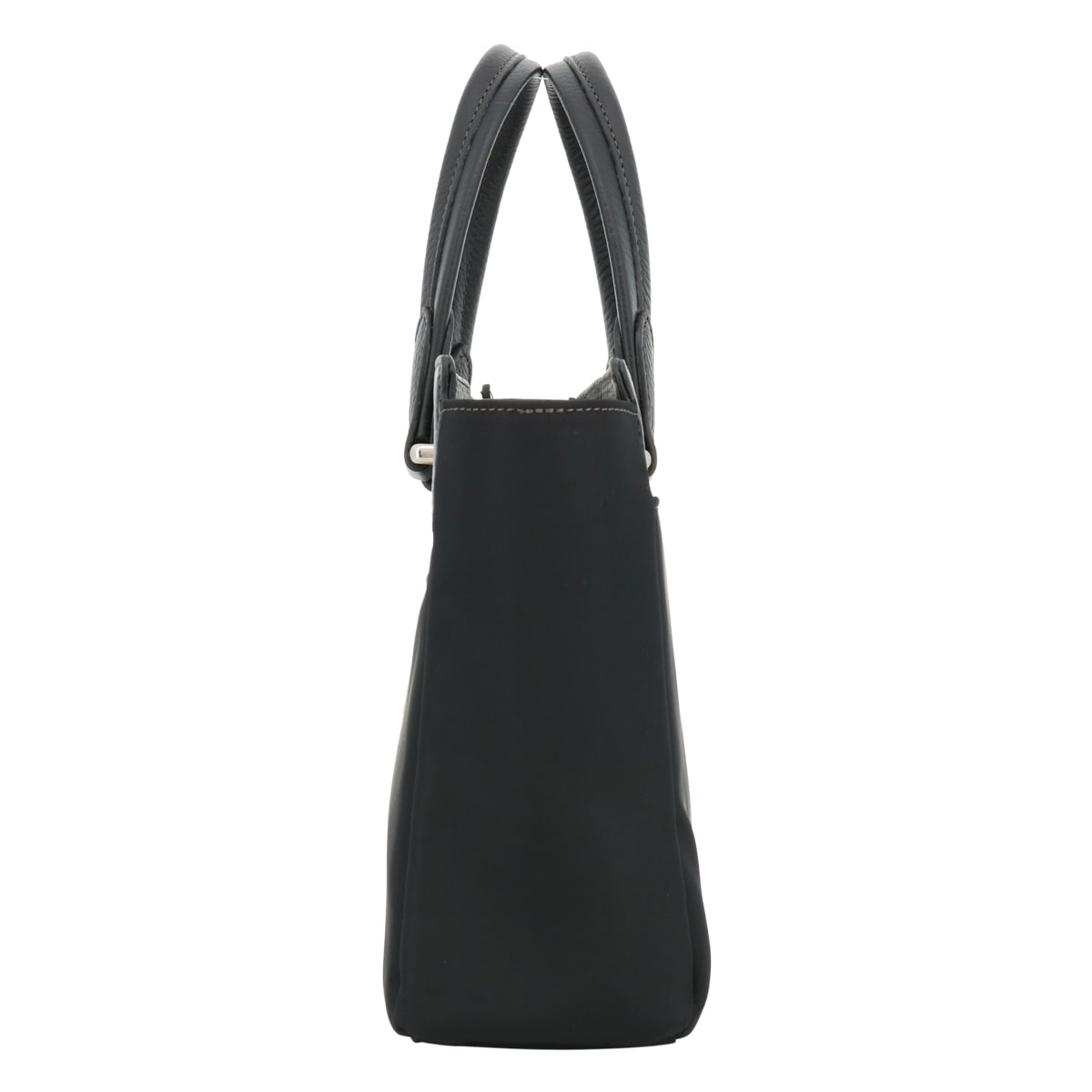 東レのエコユースを使用した高品質なリサイクルナイロン素材を使用。上品な光沢感が魅力の生地にレザーを使用したジェンダーレスなアイテムです。コンパクトサイズのトートバッグですが、お財布・スマートフォン・ペットボトル等を収納でき、見た目以上の収納力でちょっとしたお出かけに最適です。