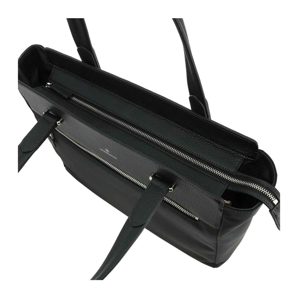 東レのエコユースを使用した高品質なリサイクルナイロン素材を使用。上品な光沢感が魅力の生地にレザーを使用したジェンダーレスなアイテムです。A4サイズを楽々収納でき、カジュアルなシーンにはもちろん、ビジネスシーンでも活躍します。13.3インチノートパソコン収納にも対応。耐久性と収納力を兼ね備えたトートバッグです。