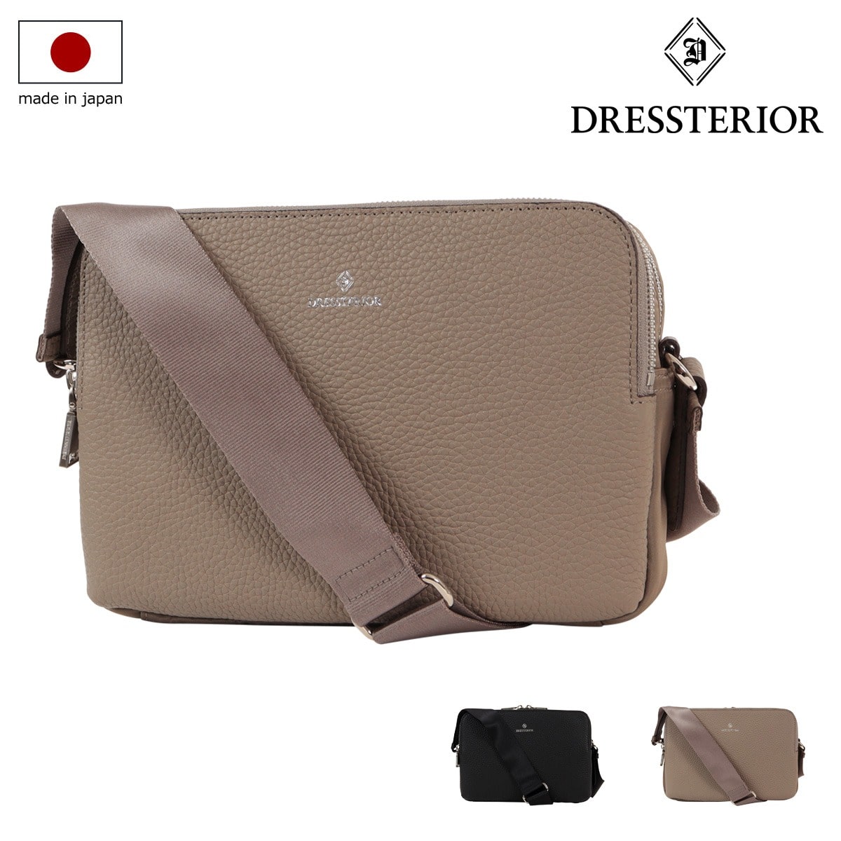 レザーとナイロンを同色でMIXした、ドレステリアのカジュアルミニショルダーバッグ。約410gと超軽量設計で、長財布がぴったり収まるコンパクトなサイズ感が魅力です。シンプルながらも洗練されたデザインで、男女問わずユニセックスでお使いいただけます。