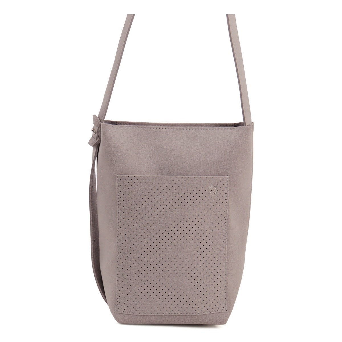 マイクロファイバー『ウルトラスエード』を用いた、ワンハンドルスモールバケットショルダーです。ハンドルはギボシ金具で長さ調節が可能です。斜めがけでも使うことができます。開口部は2つの半円型のフラップで目隠しができます。前面にパンチング加工したポケットを施しています。200gというとても軽いバッグです。家庭洗濯が可能です。