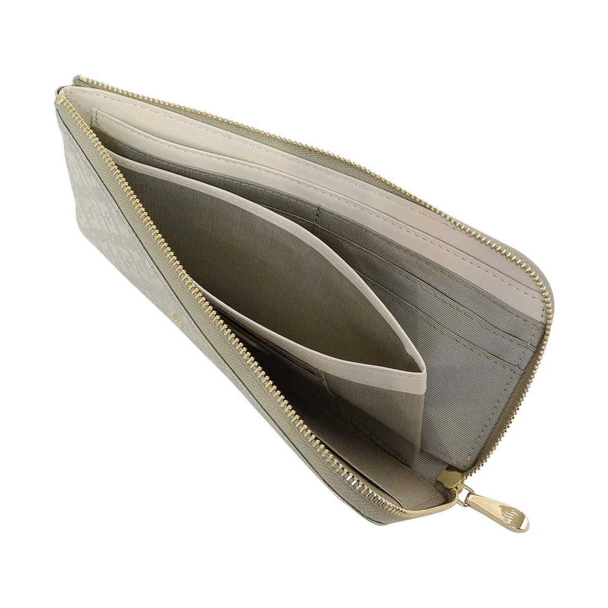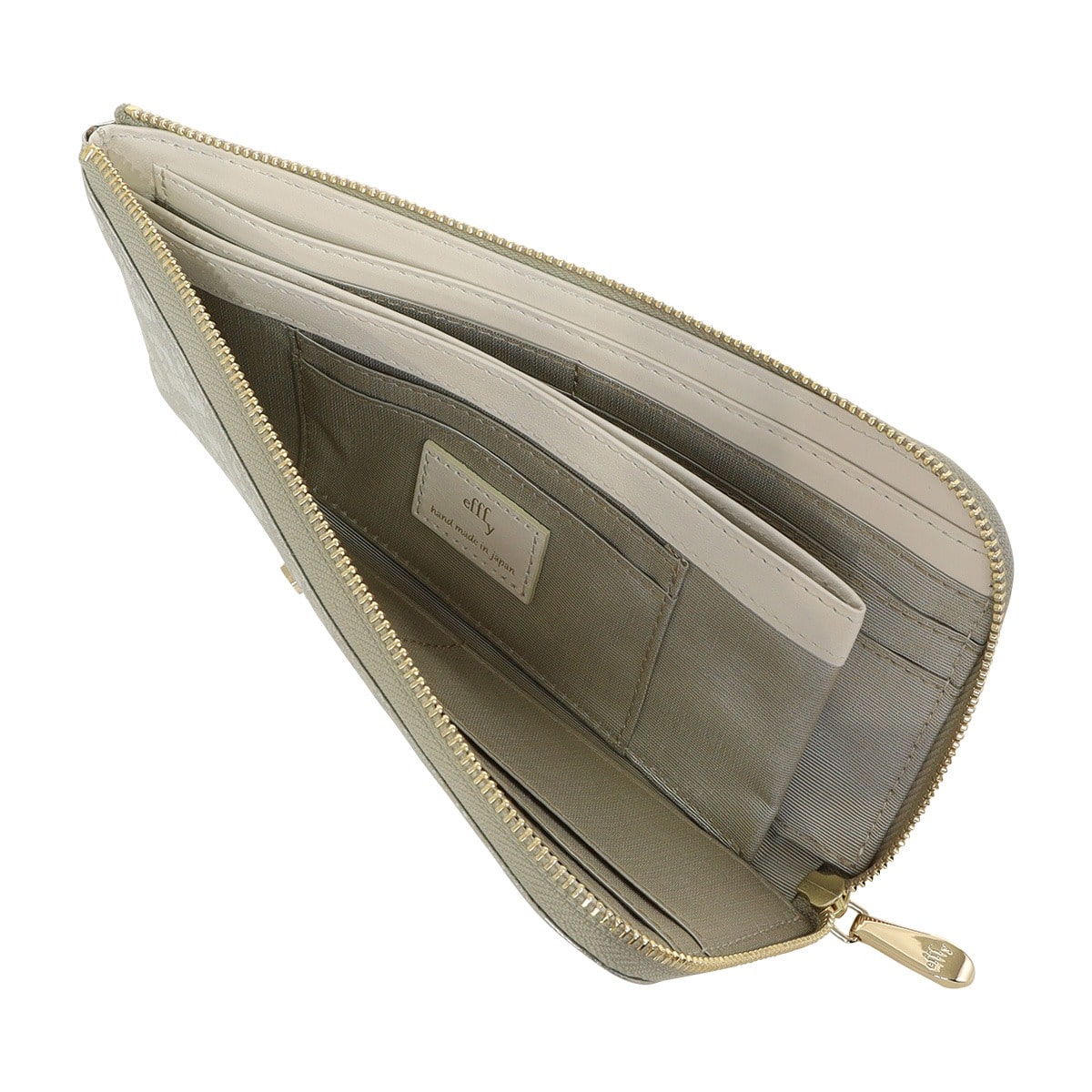 仕様:L字ファスナー式開閉内側:札入れ×2フリーポケット×3カードポケット×14背面:ファスナー式小銭入れ×1
