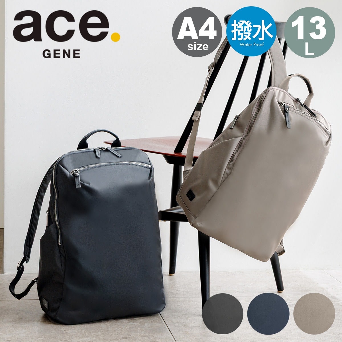 - > ace.GENE エースジーン リュック レディース ビジネスリュック 軽量 A4 14インチ ビジネスバッグ 撥水 PC収納 リュックサック バックパック デイパック キャリーオン 17911 ルフィラ ビジネス オフィス 通勤 通学 カジュアル ネイビー