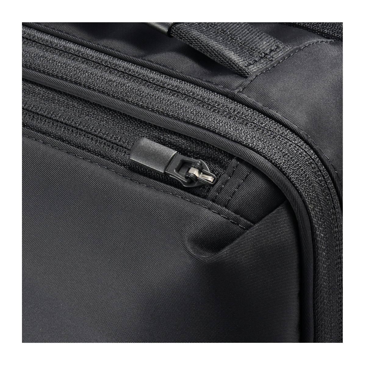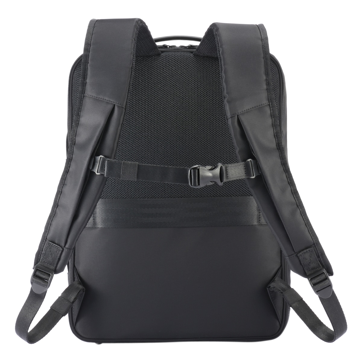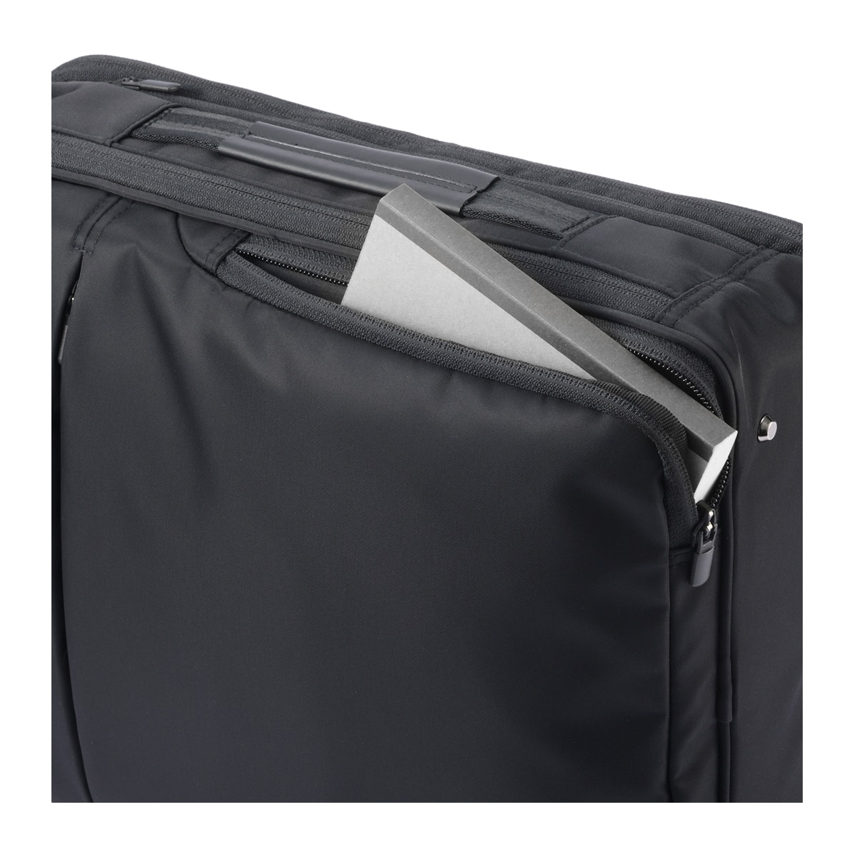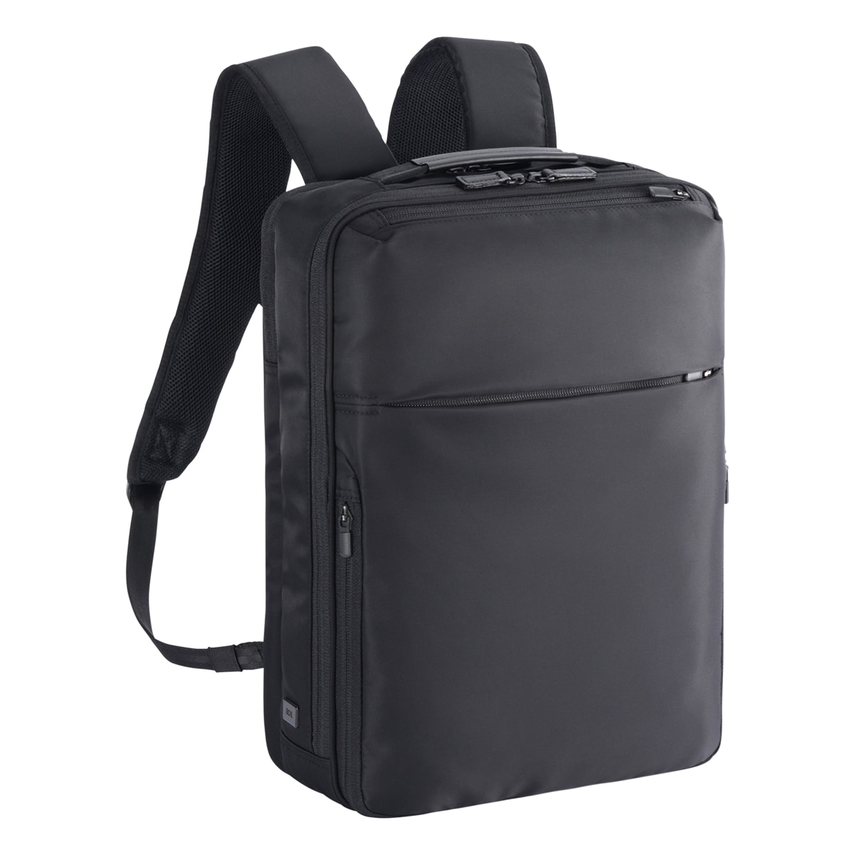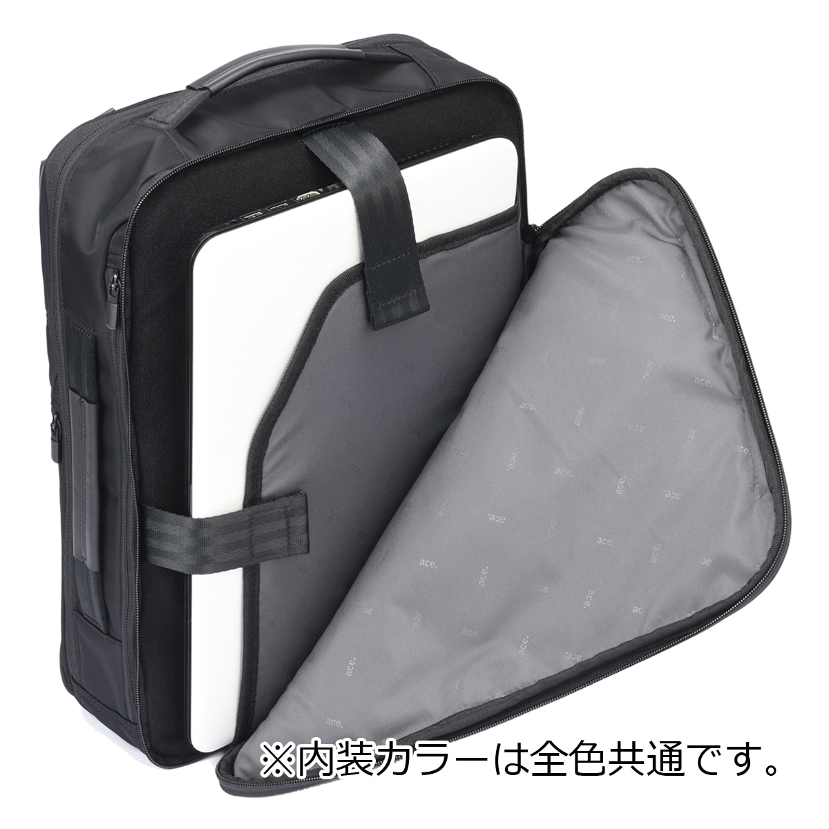仕様:ダブルファスナー式開閉内側:ファスナーポケット×1メッシュポケット×2ペンホルダー×2ボトルホルダー×1スナップボタンポケット×1前面:ファスナーポケット×3(抗菌・抗ウイルス)背面:L字ファスナーポケット×1(内側:ベルクロ式PC収納ポケット×1)キャリーセットアップ