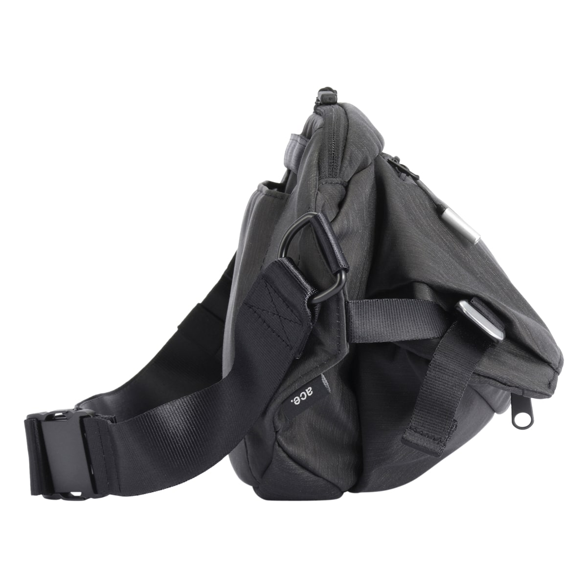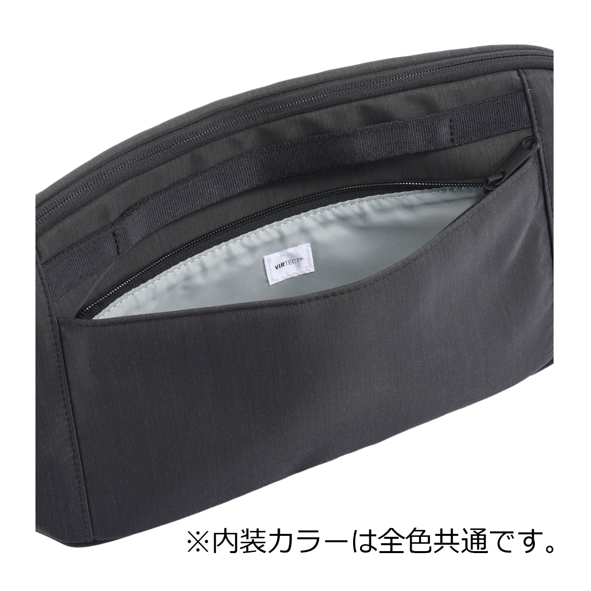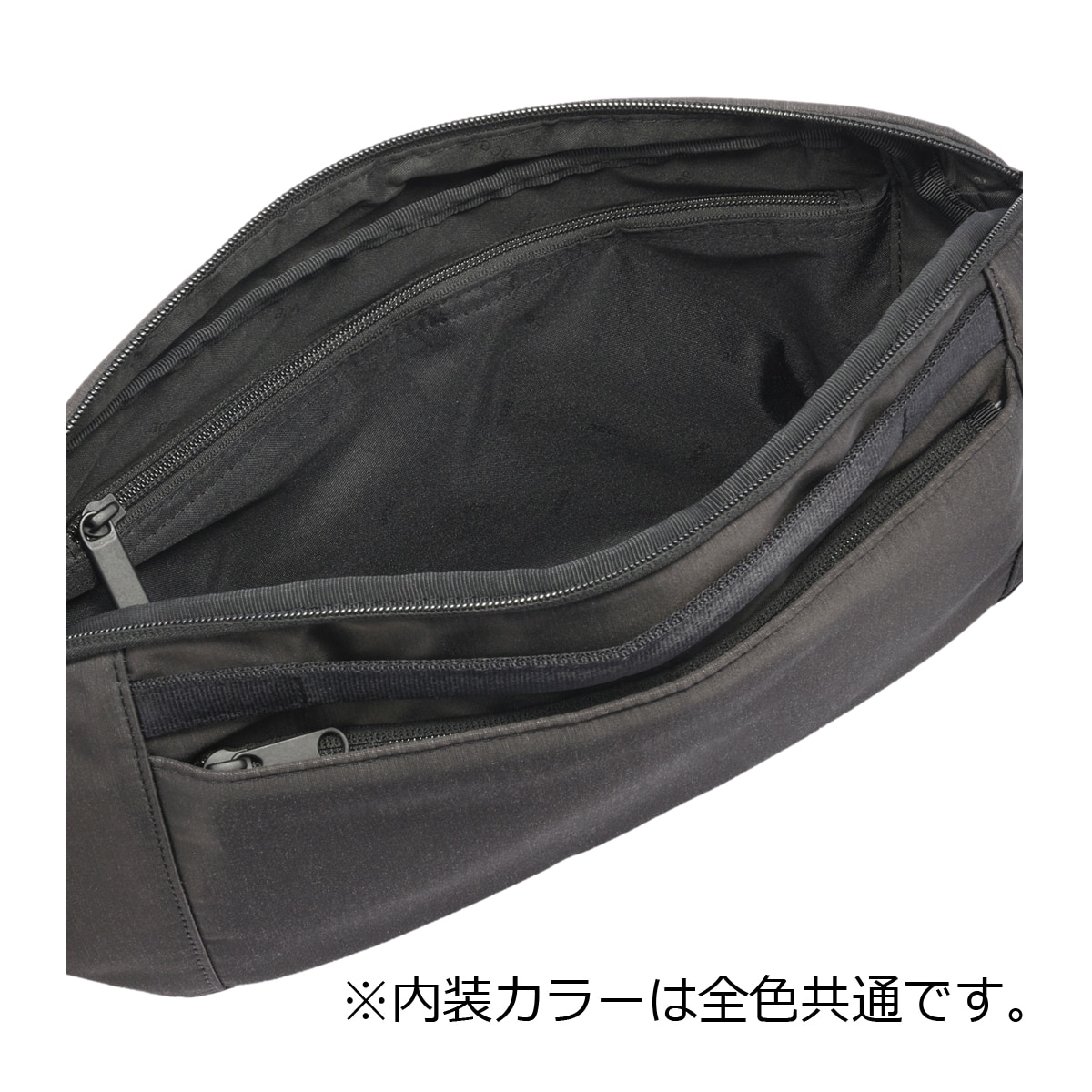 マチが拡張する新形状のスリングバッグ。フロントポケットの拡張&ダブルアクセス機能でふだんは薄マチ、に持つが増えれば大容量に。ON/OFF使えるシーンレスな心地よさを実現。