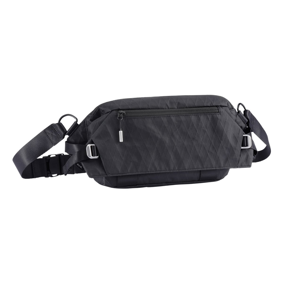 マチが拡張する新形状のスリングバッグ。フロントポケットの拡張&ダブルアクセス機能でふだんは薄マチ、に持つが増えれば大容量に。ON/OFF使えるシーンレスな心地よさを実現。