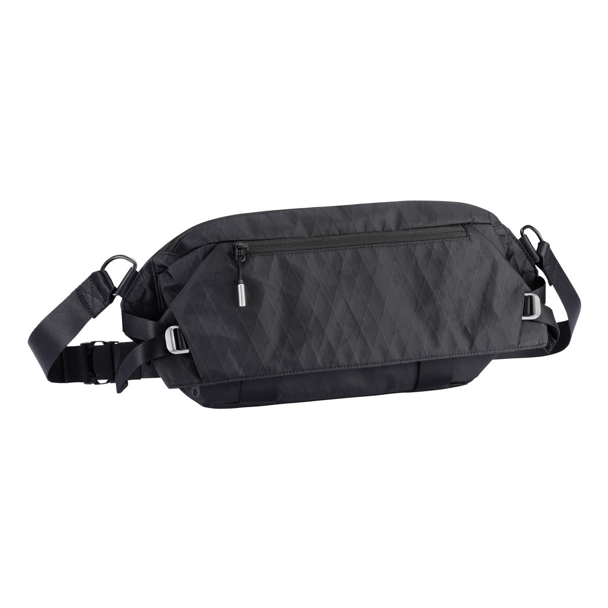 マチが拡張する新形状のスリングバッグ。フロントポケットの拡張&ダブルアクセス機能でふだんは薄マチ、に持つが増えれば大容量に。ON/OFF使えるシーンレスな心地よさを実現。