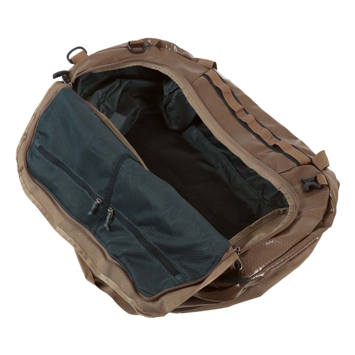 60リットルのアルパカダッフルは、大切な荷物を収納できる十分なスペースがあり、拡張可能なコンパートメントによって、汚れた衣類などを他のものと効率的に分けて収納できます。耐久性に優れたリサイクル素材と耐候性の高い生地を採用しているため、どこでも安心して使用できます。
