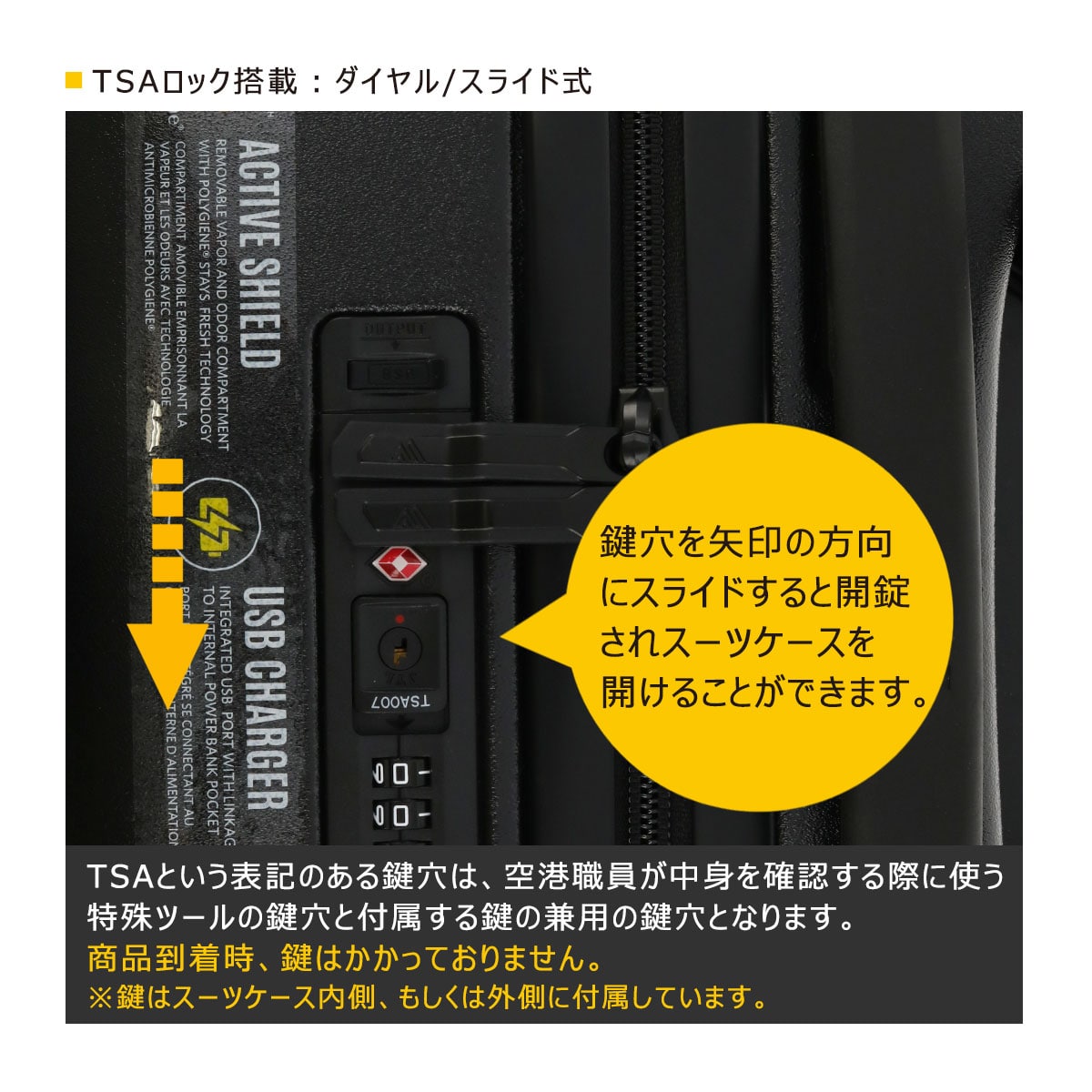 TSAロック:アメリカ(ハワイ等含む)渡航の際、TSA公認の製品に限り鍵をかけて預ける事ができます。