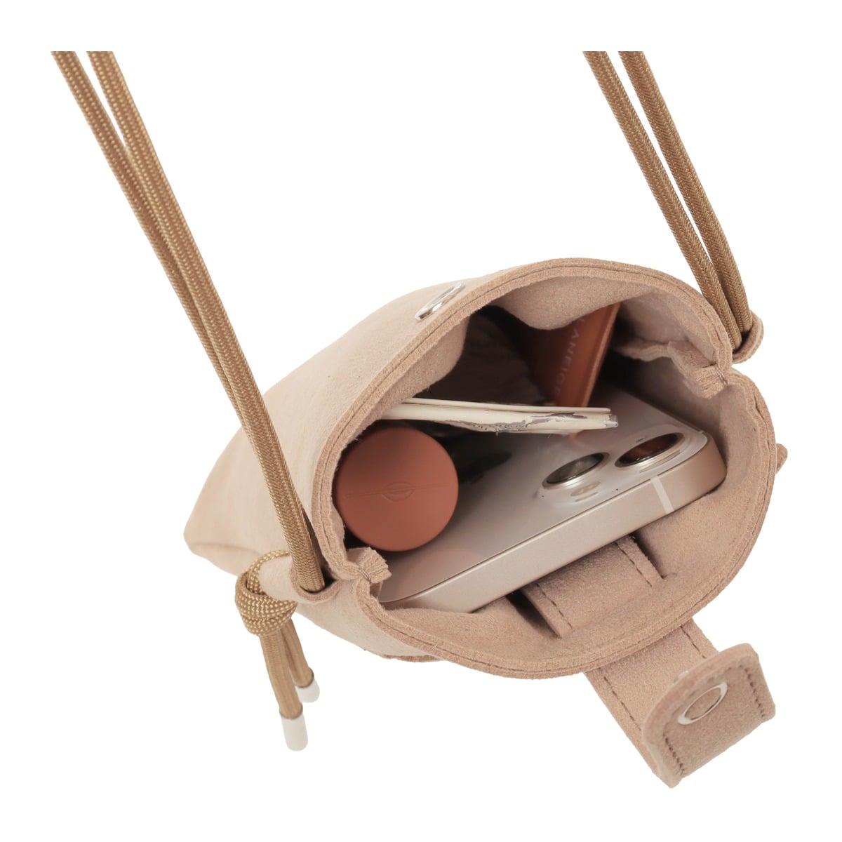 マイクロファイバー『ウルトラスエード』を用いた携帯全機種対応のモバイルショルダーです。開口部のタブを引っ張ると携帯が取り出せる仕様になっています。3段のカードポケットがフラップ内に備わっています。家庭洗濯が可能です。