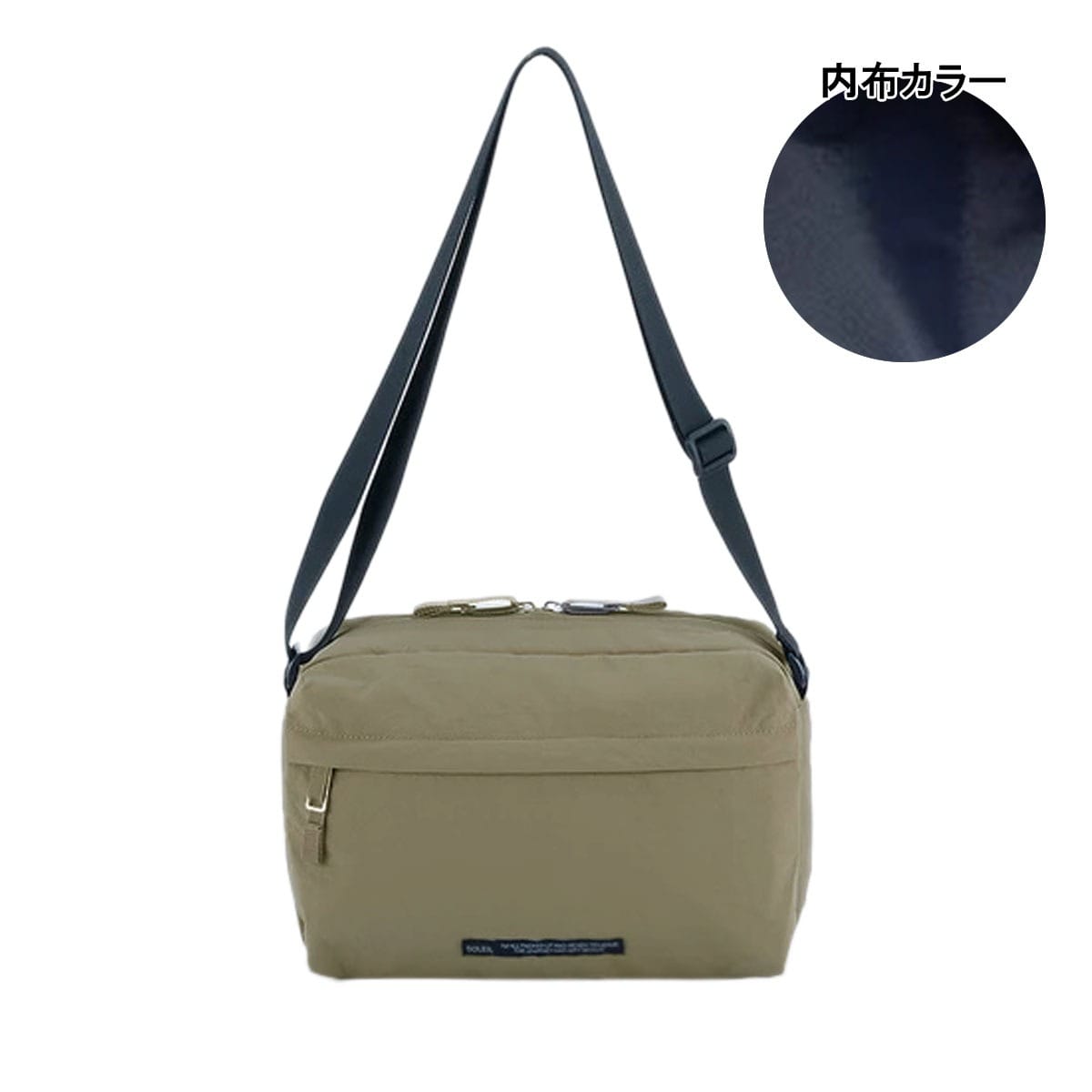 - > SOLEIL ソレイユ ショルダーバッグ 横型 40710 ライトリー 軽量 コンパクト 撥水 500mlペットボトル お出かけ 旅行 フェス スモーク/カーキ 母の日