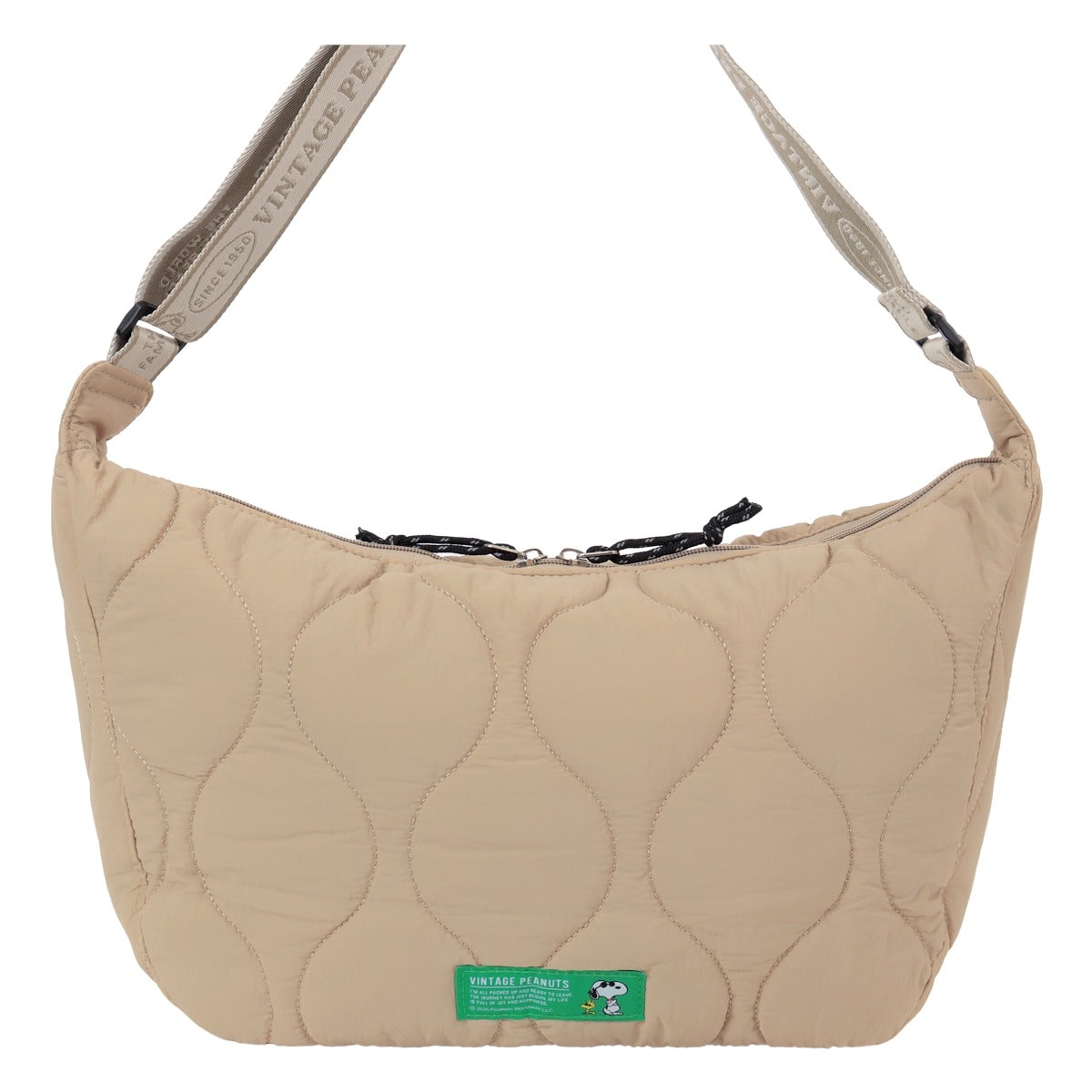 - > SNOOPY スヌーピー キルティング ショルダーバッグ A4 13インチ 40807 PEANUTS ピーナッツ 刺繍 軽量 大きめ ペットボトル収納 旅行 ブラック