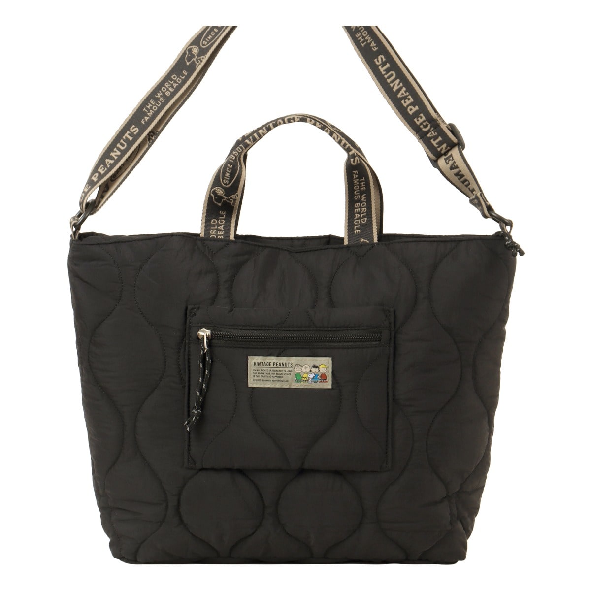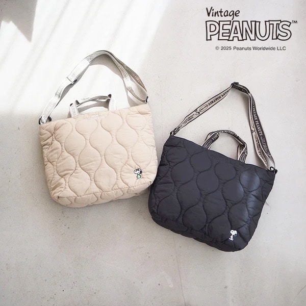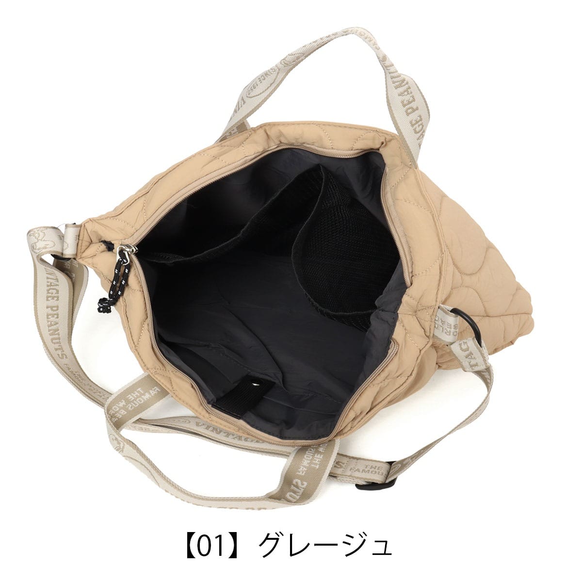 - > SNOOPY スヌーピー キルティング キャリーオン トートバッグ ショルダーバッグ 2way A4 13インチ 40808 PEANUTS ピーナッツ 刺繍 軽量 大きめ PC 1泊2日 旅行 通学 グレージュ