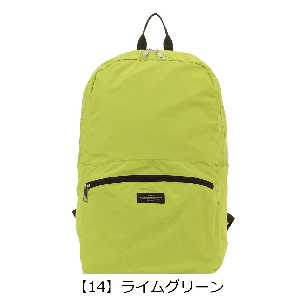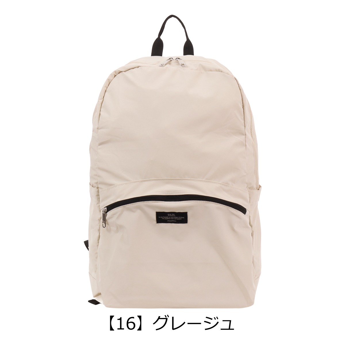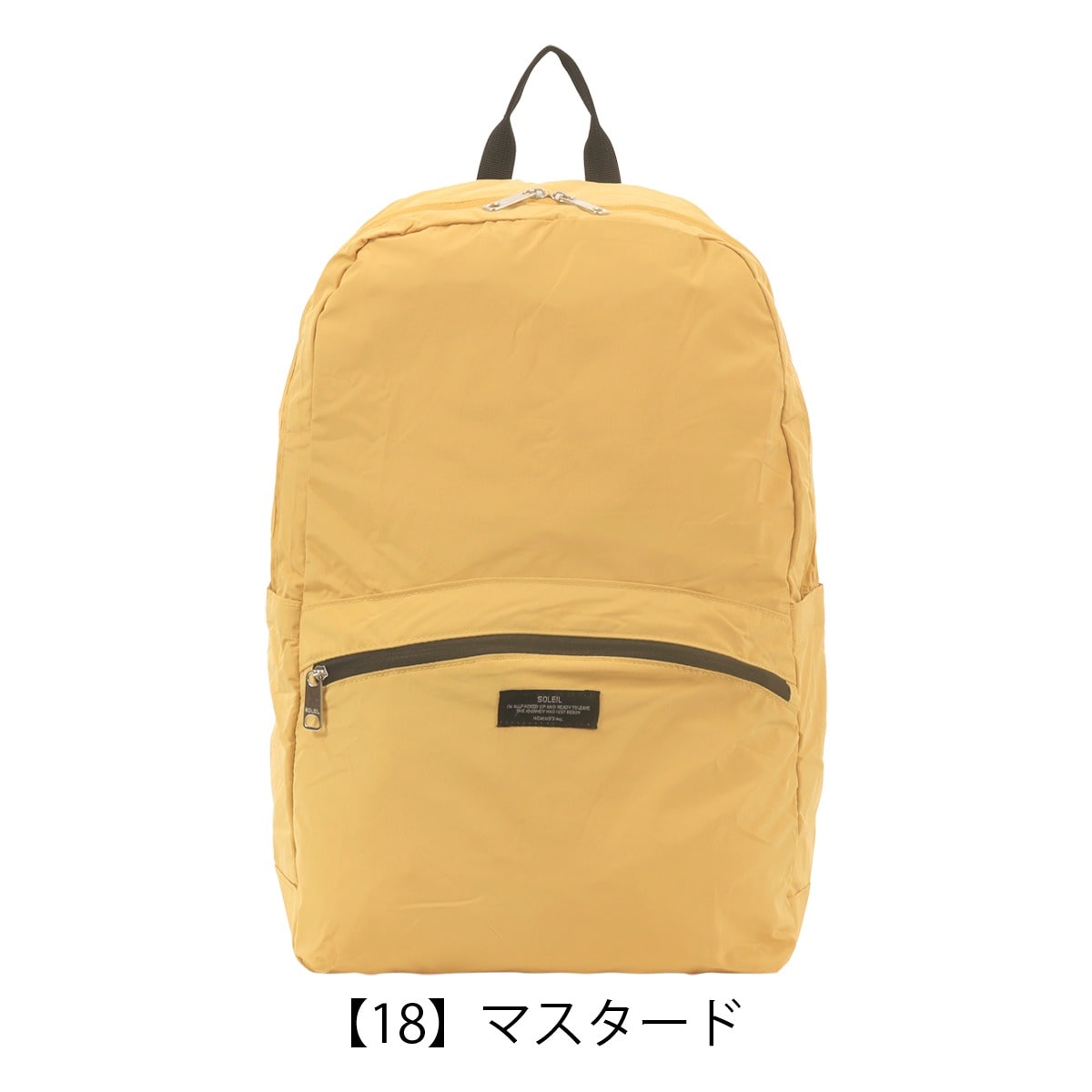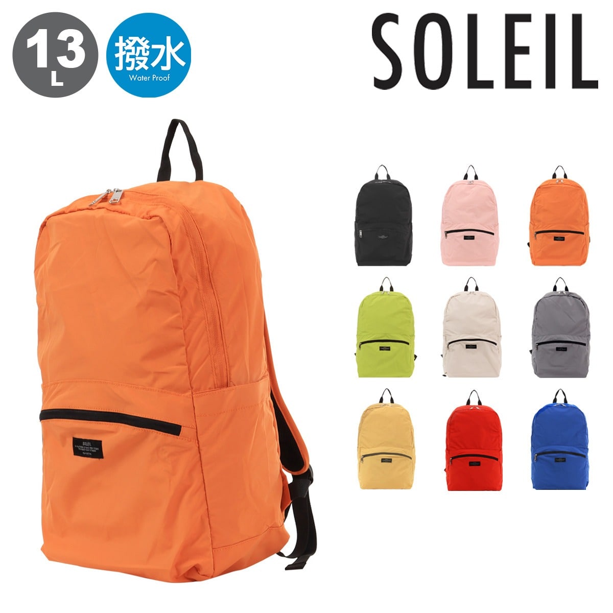 SOLEIL ( ソレイユ ) は、普段使いはもちろん、お手持ちのバッグに携帯すれば荷物が増えるアウトドアや旅行、お買い物といった様々なシーンでお使いいただけます。 用途に合わせて使い分けができる豊富な種類、選べるカラーが魅力のブランドです。ハンズフリーになるデイパックは、いつものお出かけやちょっとしたアウトドア、旅行など様々なシーンで大活躍します。