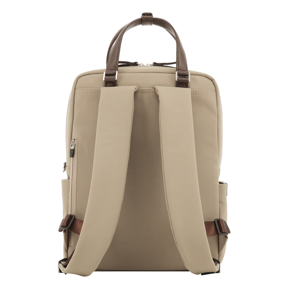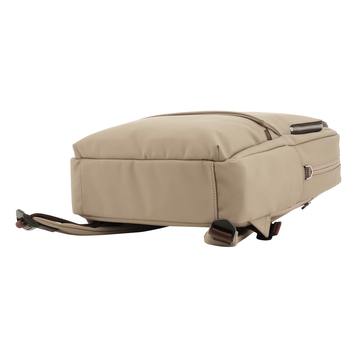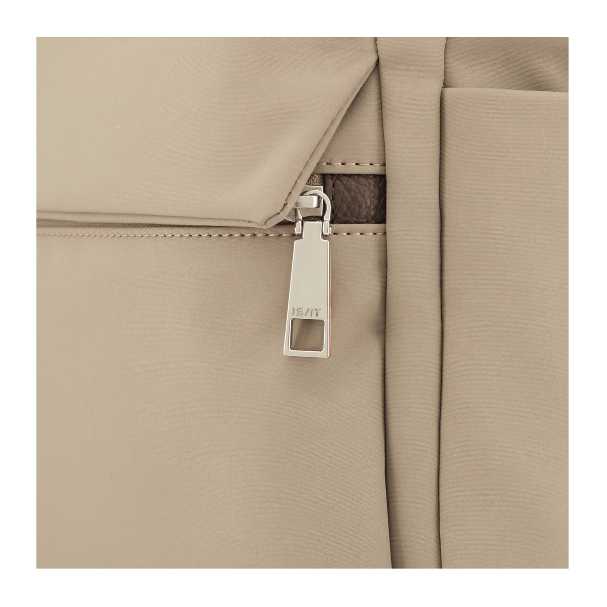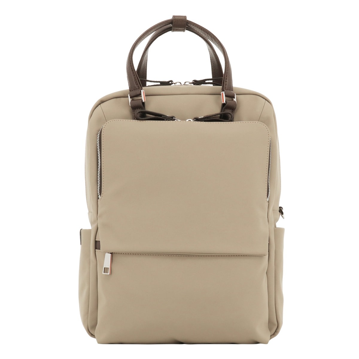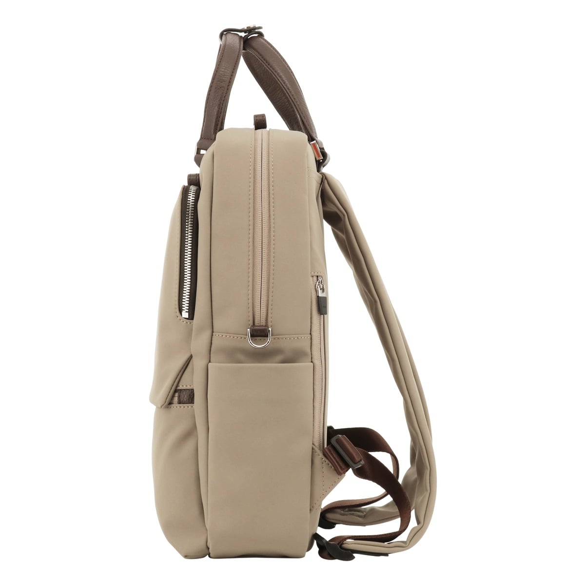 撥水加工されたポリエステル生地に特殊な裏加工を施し、より撥水性を高めて、軽量・ハリ感が両立したメイン素材にメイン収納部や背面ポケット等に撥水ファスナーを採用した晴れの日でも雨の日でも使いやすい軽量ビズリュックシリーズです。カフェなどの雨除け屋根(オーニング)をモチーフに、サイドにはパスケースなどがつけられるDカンやISITロゴのタグなど機能性を持ったジェンダーニュートラルなデザインがポイントです。