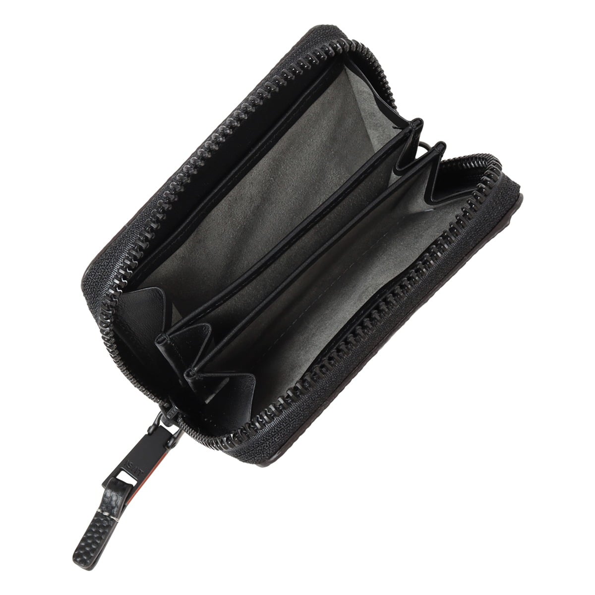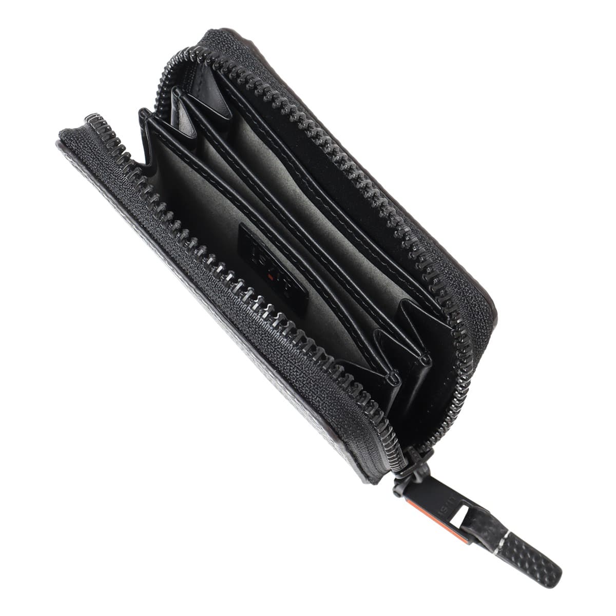 仕様:ラウンドファスナー式開閉内側:小銭入れ×3フリーポケット×2背面:窓付きカードポケット×1