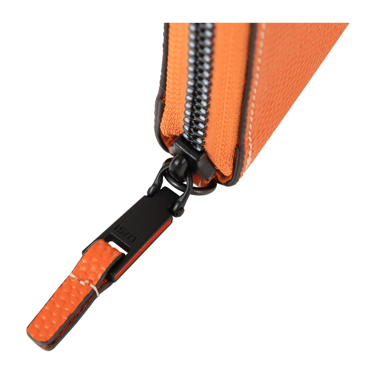 実際のバスケットボールで使用されるレザーを使用した小物シリーズ。オレンジ色はmolten社製公式球のレザーそのままになります。オリジナルエンボス模様や凹凸の深さ、タッチ感など細かい規定に沿って生産されるマテリアルになります。摩擦等の擦れに非常に強く、手に吸い付くような独特のタッチ感が魅力になります。