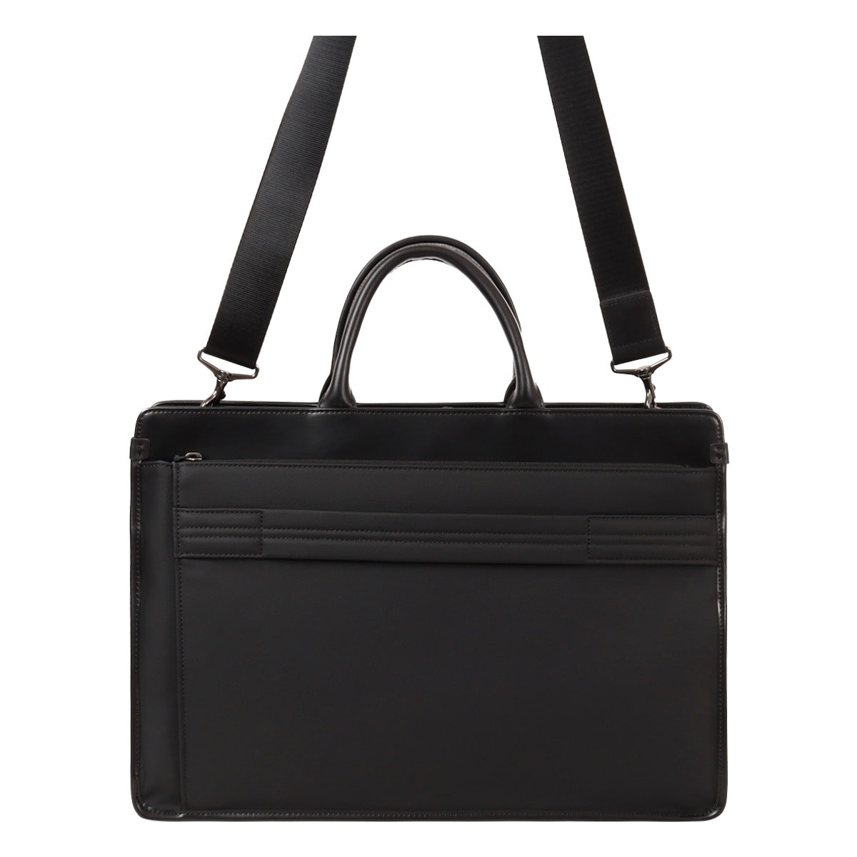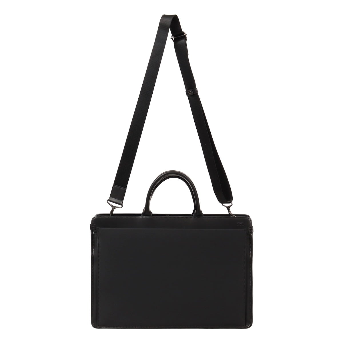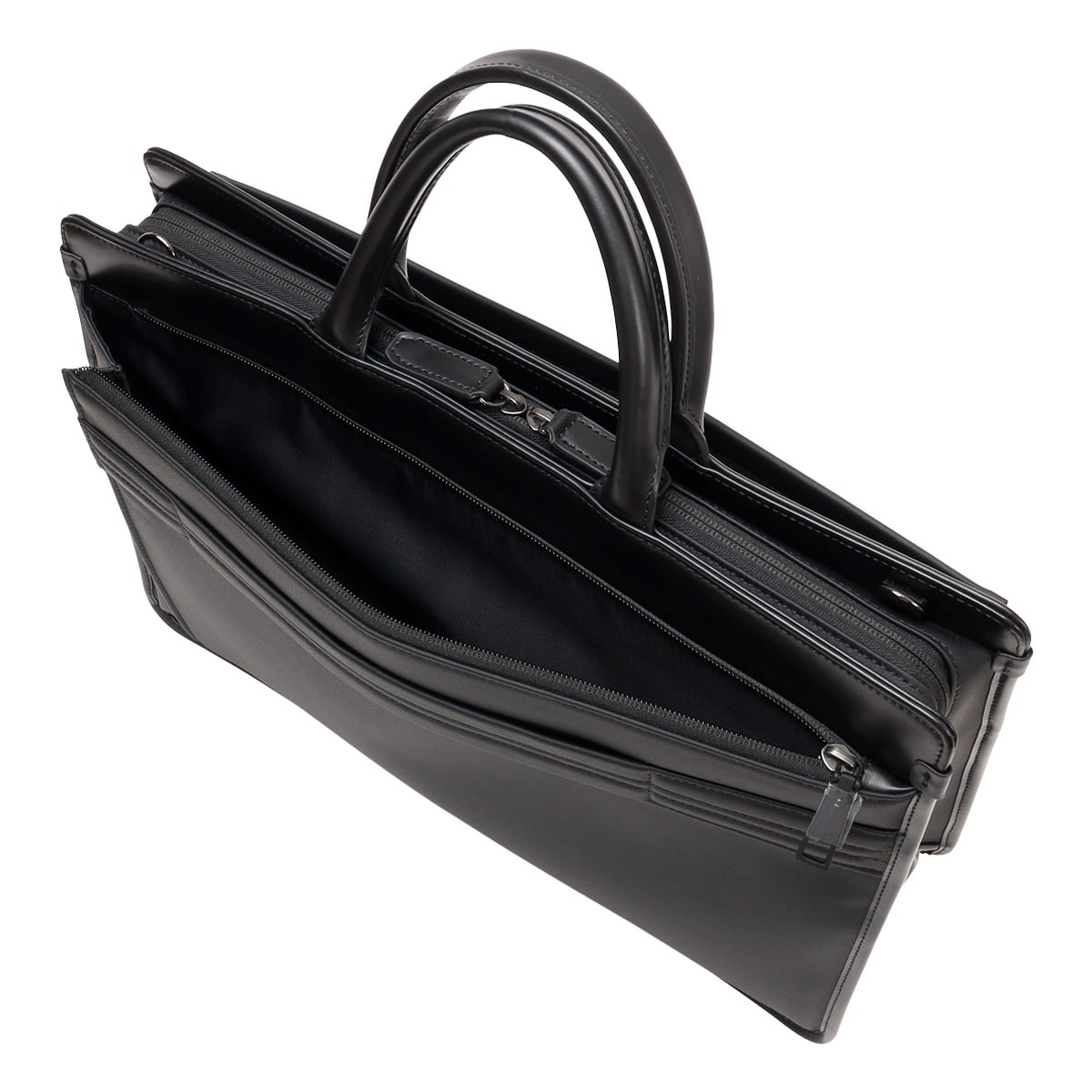 「これぞ鉄板ビズバッグ !」という機能性を徹底的に追求し、フル装備したビズシリーズです。通しマチ仕様できっちりと自立+計10か所の充実ポケット+セットアップ機能付。主素材が水をはじく特性があることはもちろんのこと、付属革にもスコッチガード撥水革を使用。ジッパーは撥水コイルファスナーを使用。全て撥水性のある素材の為、雨の日でも安心。きちんと感のあるオールブラックカラーで、幅広く対応可能なビズバッグシリーズです。