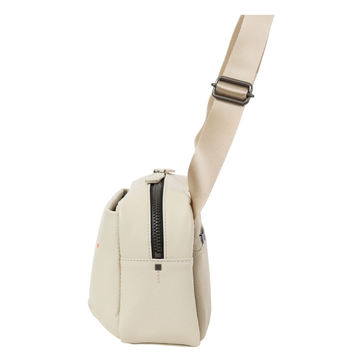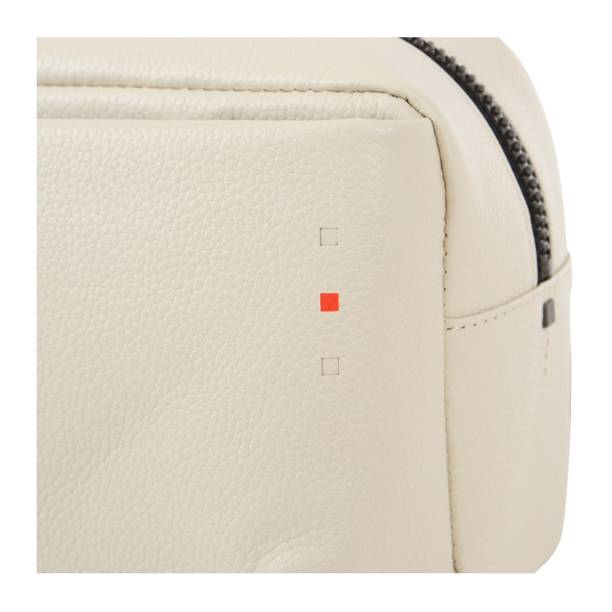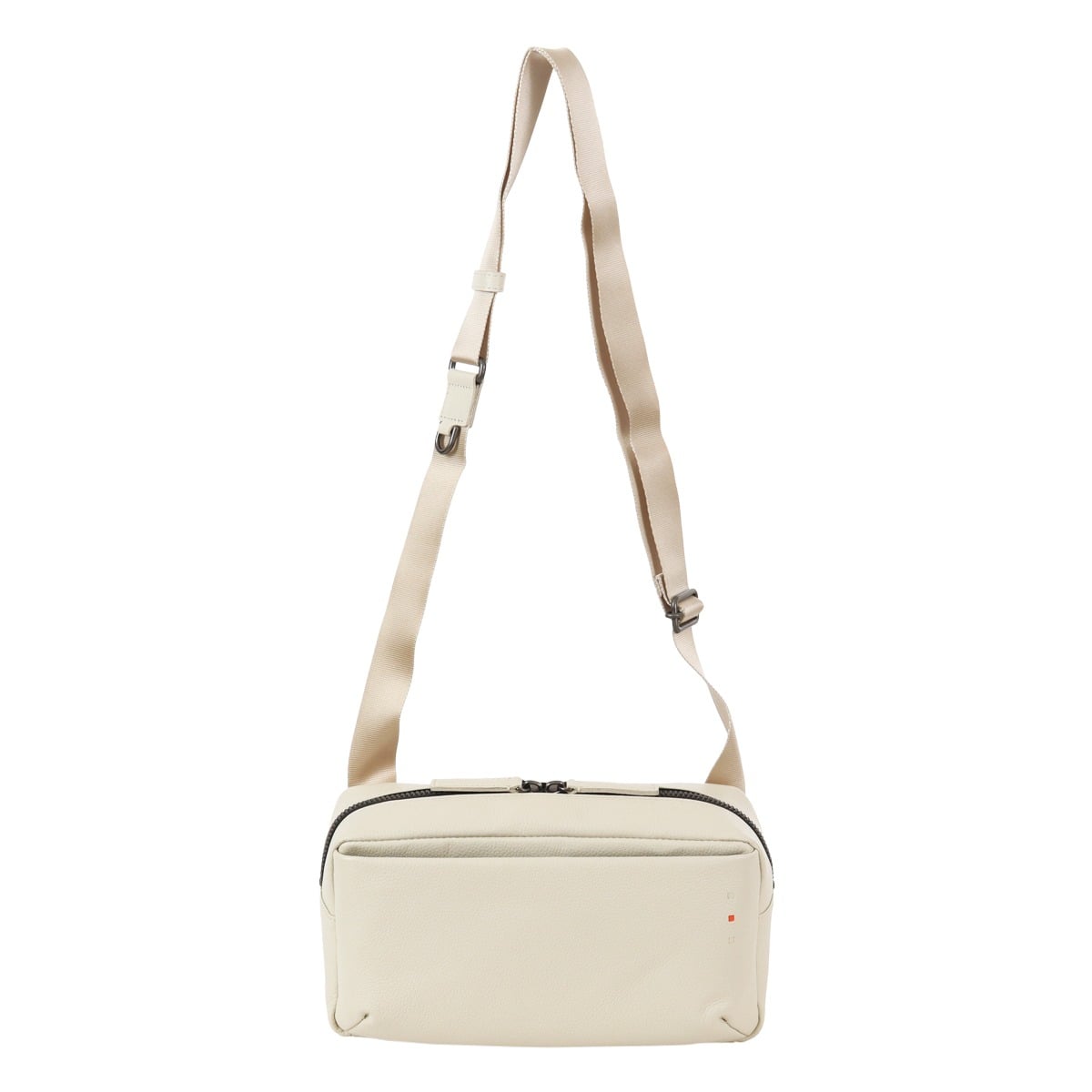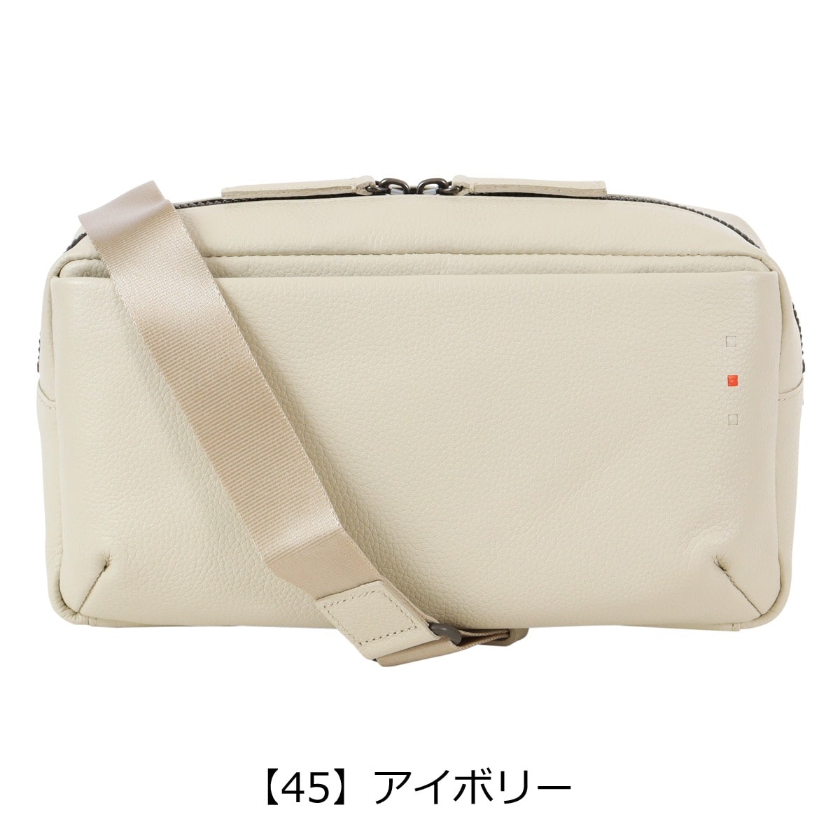 本体素材は、スコッチガード加工を施したシュリンクシボ(エンボス)の牛革を使用。金具はソフト黒ニッケル色を採用し、ナイロンテープは本体革と同色系を採用する事でスッキリとした見た目に。シンプルでコロンとしたかわいいキューブ型は、持つ人の個性を引き立たたせてくれます。