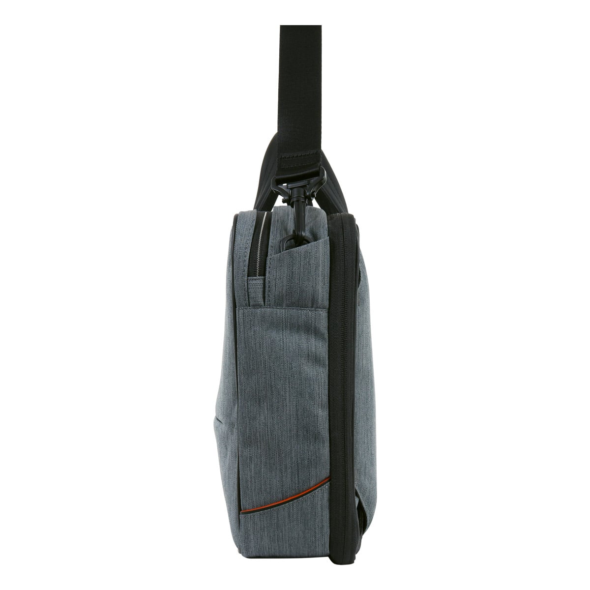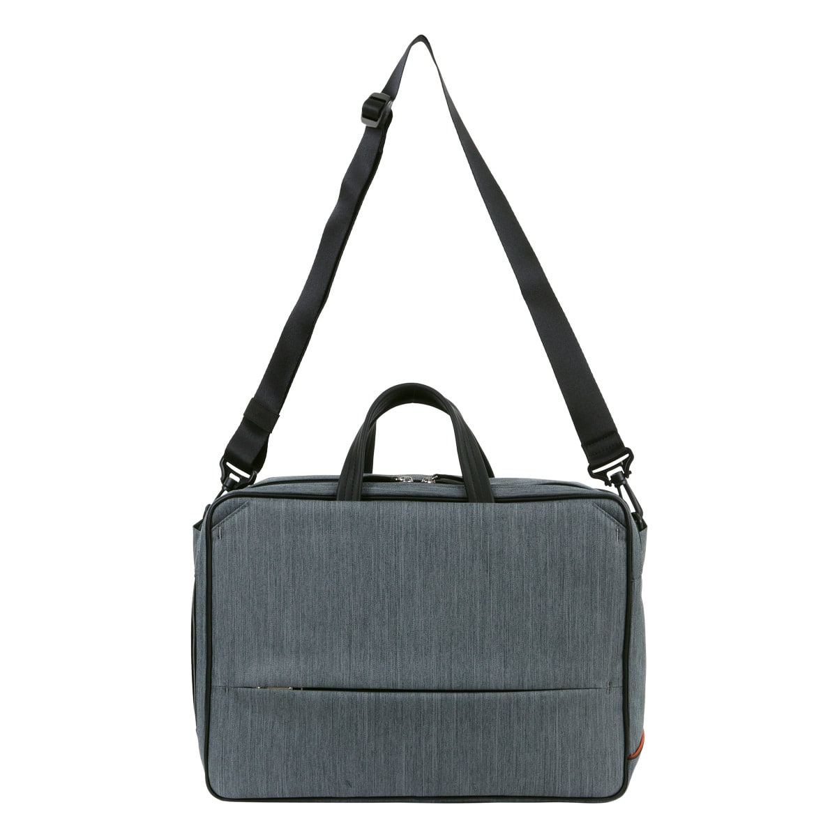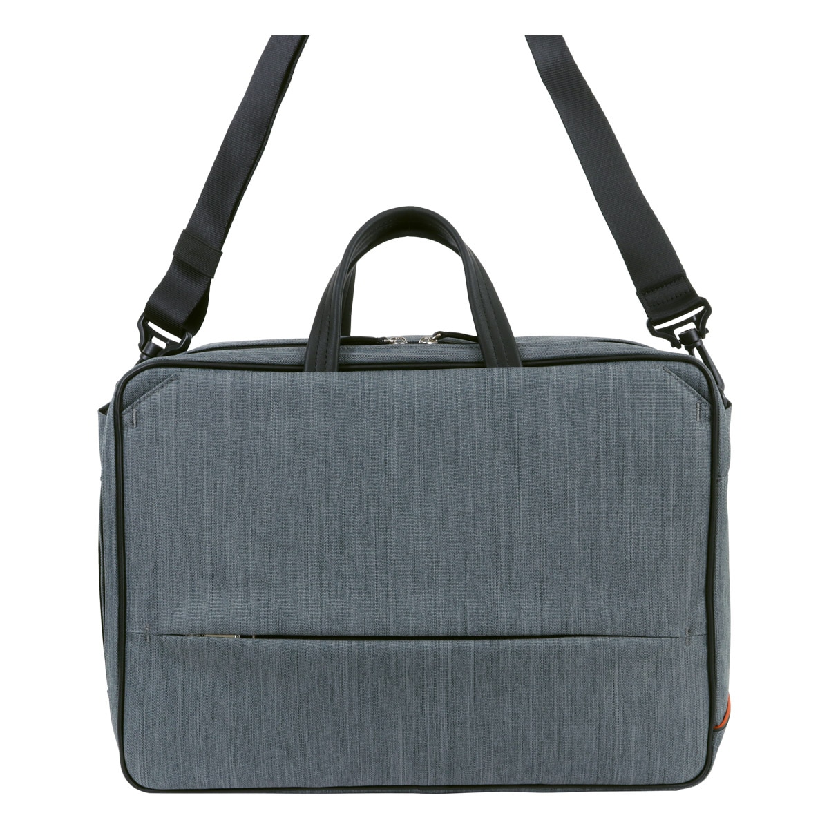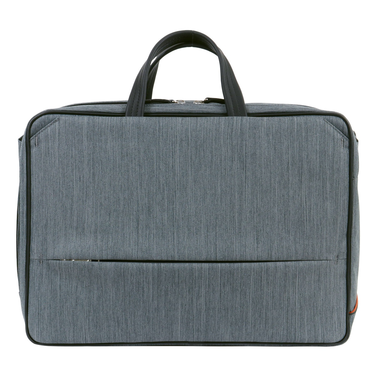 エコ通勤やジャケットスタイルにも合う、軽量ビズ~ビジカジトリップシリーズ「ルシェルII」。主素材にはシャンブレー調のポリエステル生地に撥水加工を施した生地を使用し、軽量に仕上げました。シンプルなデザインながらも、ハンドルが隠れる機能が特徴。フロントポケットの内側は見やすいオレンジ色のパイル地を使用。スマホなどの電子ツール収納に適したポケットなど機能性の充実したシリーズです。