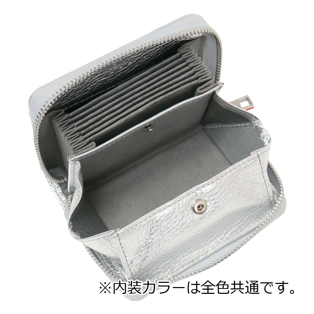 仕様:ラウンドファスナー式開閉内側:スナップボタン式BOX型小銭入れ×1札入れ×1カードポケット×6背面:フリーポケット×1