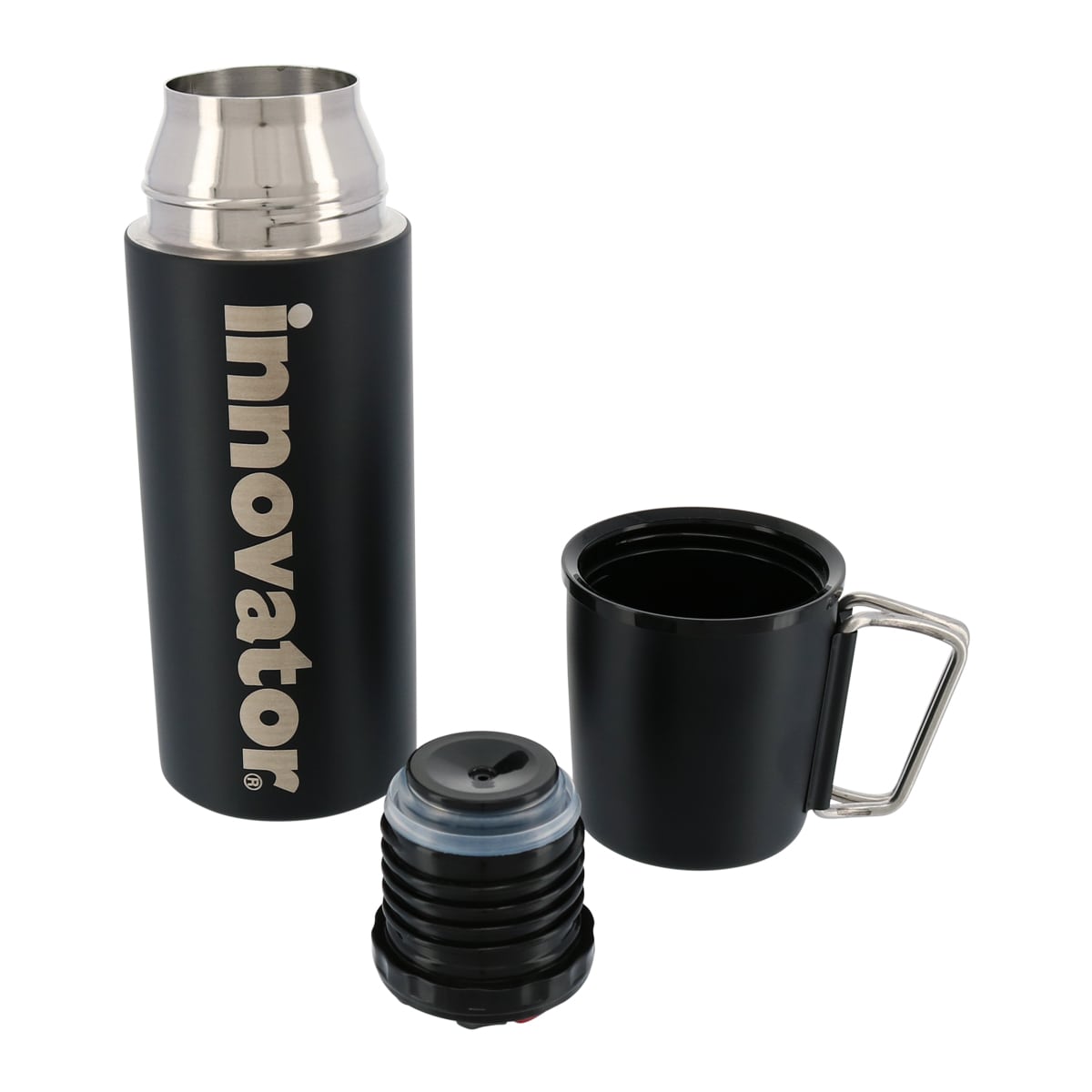 真空二重構造で保温・保冷効果が高く、飲み頃の温度を長時間キープ。コップ部分は持ちやすい可動式の持ち手仕様。。
