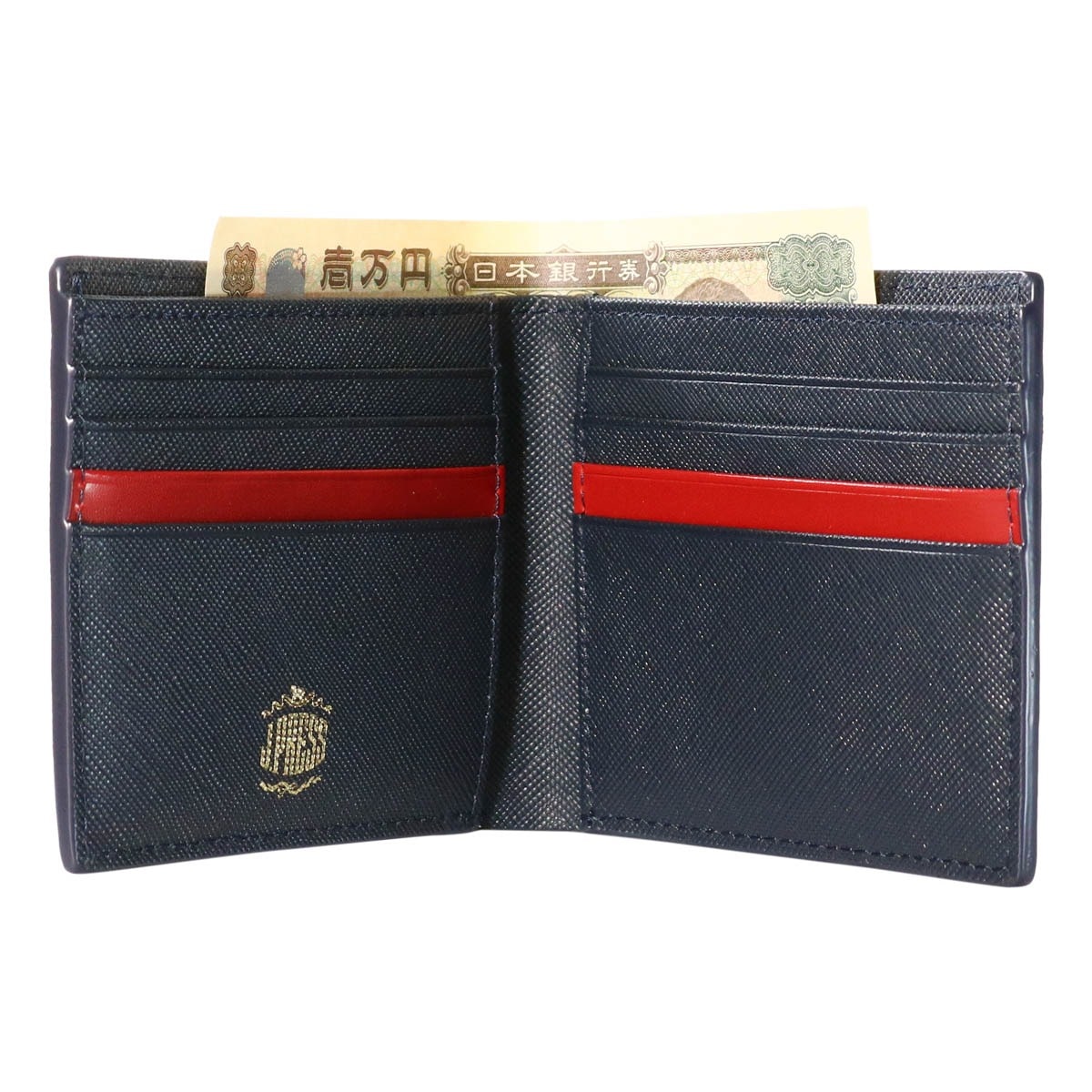 J.PRESSのアイコン的なアイテムであるブレザーをイメージしたシリーズです。特徴であるゴールドのエンブレムボタンを表側にモチーフとしてあしらい、内側にはブレザーの裏地に意匠的に用いられている赤いパイピングをレザーで表現しております。ブレザーの生地をイメージしたエンボスレザーはきめ細やかなキップ使用しております。タンニンとクロムのコンビネーション鞣しにより、独特なハリとコシを持たせ、セミアニリン仕上げにより透明感のある均一な色目に仕上げております。アメリカントラディショナルな気品のあるデザインを取り入れたプレッピーテイストを楽しめる商品です。