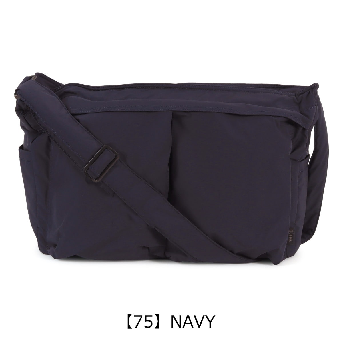 ヘルメットバッグをイメージしたフェイスがデザインポイントのショルダーバッグで、軽量素材にボンディング加工を施し見た目以上の軽さが特徴です。内側にペットボトルホルダーを付け、サイドのポケットにも 500mlペットボトルも収納可能です。天口、前ポケットのファスナーをダブルファスナー仕様にしていて右掛け、左掛け問わずご使用いただけます。