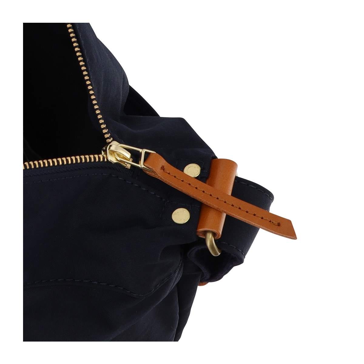 堅牢で独特なシワ感のある「ザックナイロン」に牛革を付属したシリーズ。ナイロンをギュッと縮める「塩縮加工」を施した、存在感ある風合いを持ったナイロンを使用しています。天然素材のような優しい見た目ながら、1枚でも自立するくらいに厚手でしっかりとした手触り。縮めたことで密度が高まり、生地は堅牢性と弱撥水性を高めています。とにかく軽いシリーズです。