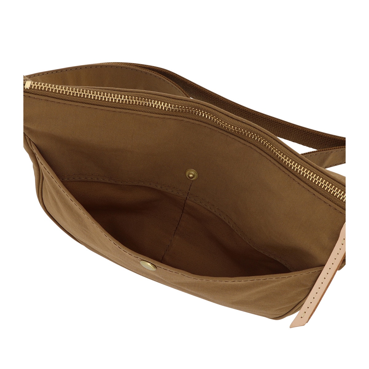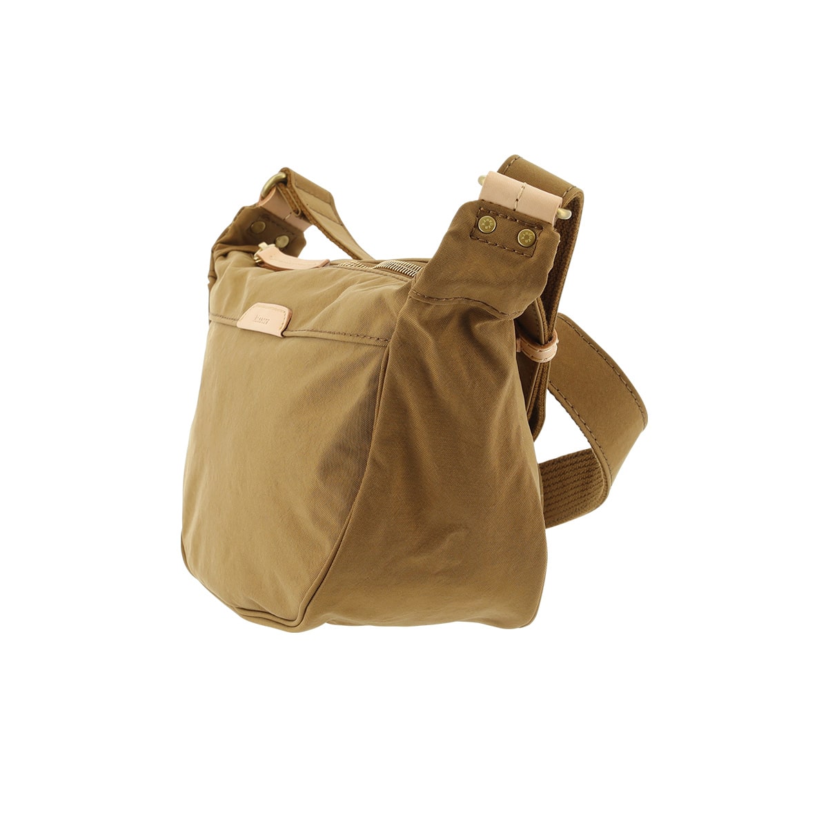 堅牢で独特なシワ感のある「ザックナイロン」に牛革を付属したシリーズ。ナイロンをギュッと縮める「塩縮加工」を施した、存在感ある風合いを持ったナイロンを使用しています。天然素材のような優しい見た目ながら、1枚でも自立するくらいに厚手でしっかりとした手触り。縮めたことで密度が高まり、生地は堅牢性と弱撥水性を高めています。とにかく軽いシリーズです。