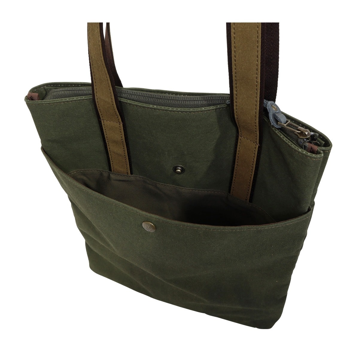 仕様:ファスナー式開閉内側:フリーポケット×1前面:スナップボタンポケット×1背面:スナップボタンポケット×1