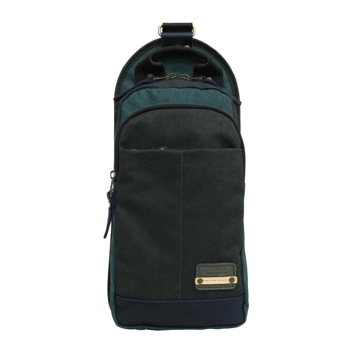 10オンスのアーミーダック生地。アメリカ軍でテント用として使用されていた生地のヨコ糸を、綿から難燃性の高いモダクリル繊維に変更。更に難燃顔料コーティングを施すことにより防水性と難燃性を有した機能素材。この生地の耐水圧は1,000mmと、一般的な傘の耐水圧250~500mmの2~4倍以上の耐水性があり、水の浸透をしっかり防いでくれます。付属されている革は、素上げ手袋用に鞣した革を下地ベースに、染色時に防水効果のある薬品油を配合しており、表面だけでなく革の繊維自体に防水油を入れ込んだ処方ですので、内側からも効果を発揮します。※完全防水ではありません