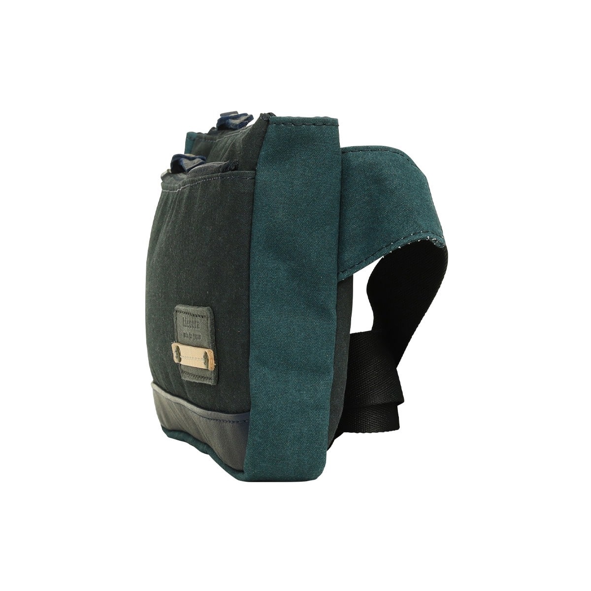 10オンスのアーミーダック生地。アメリカ軍でテント用として使用されていた生地のヨコ糸を、綿から難燃性の高いモダクリル繊維に変更。更に難燃顔料コーティングを施すことにより防水性と難燃性を有した機能素材。この生地の耐水圧は1,000mmと、一般的な傘の耐水圧250~500mmの2~4倍以上の耐水性があり、水の浸透をしっかり防いでくれます。付属されている革は、素上げ手袋用に鞣した革を下地ベースに、染色時に防水効果のある薬品油を配合しており、表面だけでなく革の繊維自体に防水油を入れ込んだ処方ですので、内側からも効果を発揮します。※完全防水ではありません