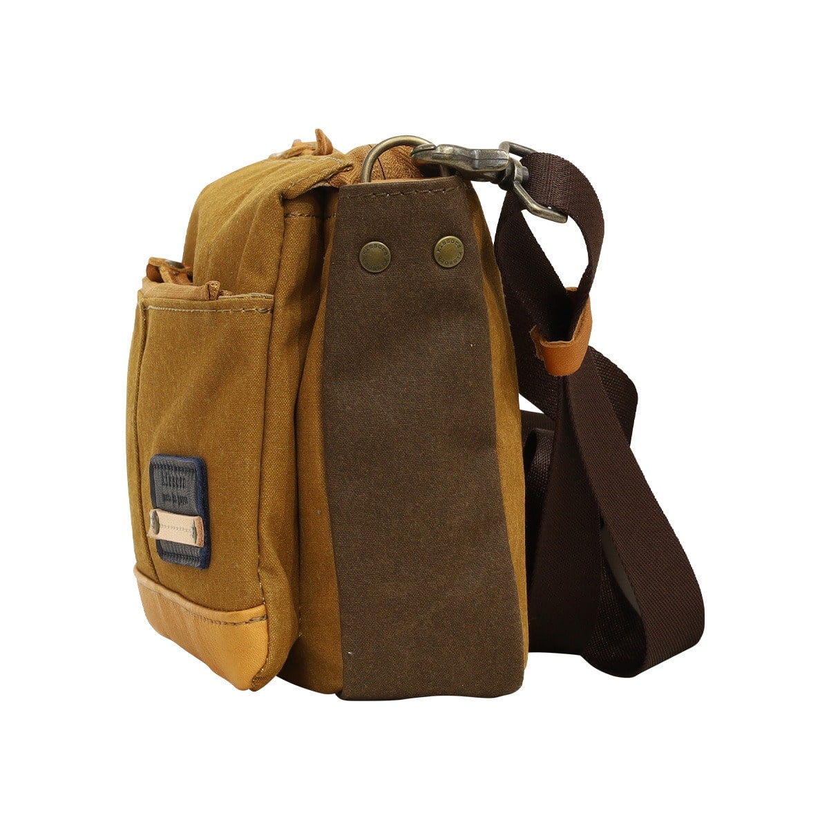 10オンスのアーミーダック生地。アメリカ軍でテント用として使用されていた生地のヨコ糸を、綿から難燃性の高いモダクリル繊維に変更。更に難燃顔料コーティングを施すことにより防水性と難燃性を有した機能素材。この生地の耐水圧は1,000mmと、一般的な傘の耐水圧250~500mmの2~4倍以上の耐水性があり、水の浸透をしっかり防いでくれます。付属されている革は、素上げ手袋用に鞣した革を下地ベースに、染色時に防水効果のある薬品油を配合しており、表面だけでなく革の繊維自体に防水油を入れ込んだ処方ですので、内側からも効果を発揮します。※完全防水ではありません