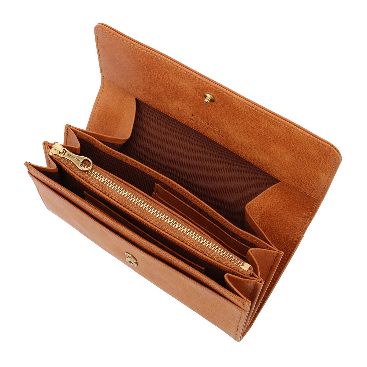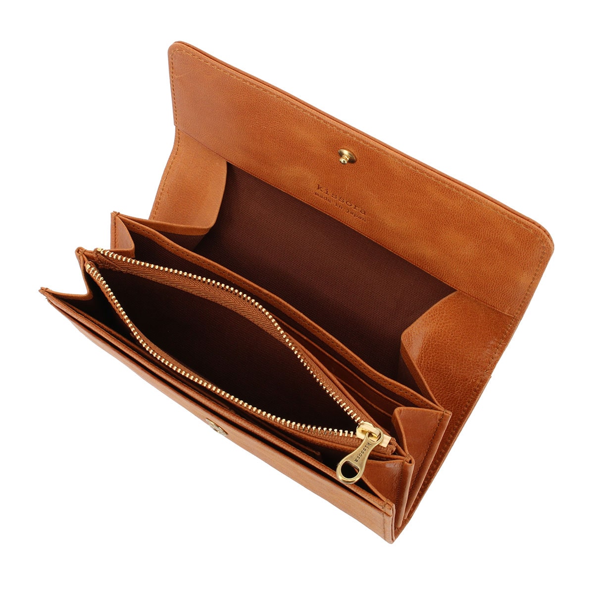 仕様:スナップボタン式(2段階調節有)内側:札入れ×2ファスナーポケット×1カードポケット×10フリーポケット×1BOX小銭入れ×1背面:オープンポケット×1