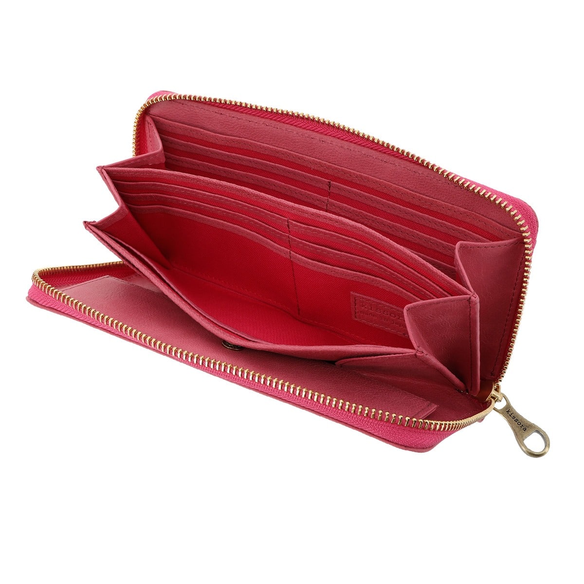 仕様:ラウンドファスナー式開閉内側:札入れ×2フリーポケット×3カードポケット×12スナップボタン式BOX型小銭入れ×1背面:オープンポケット×1