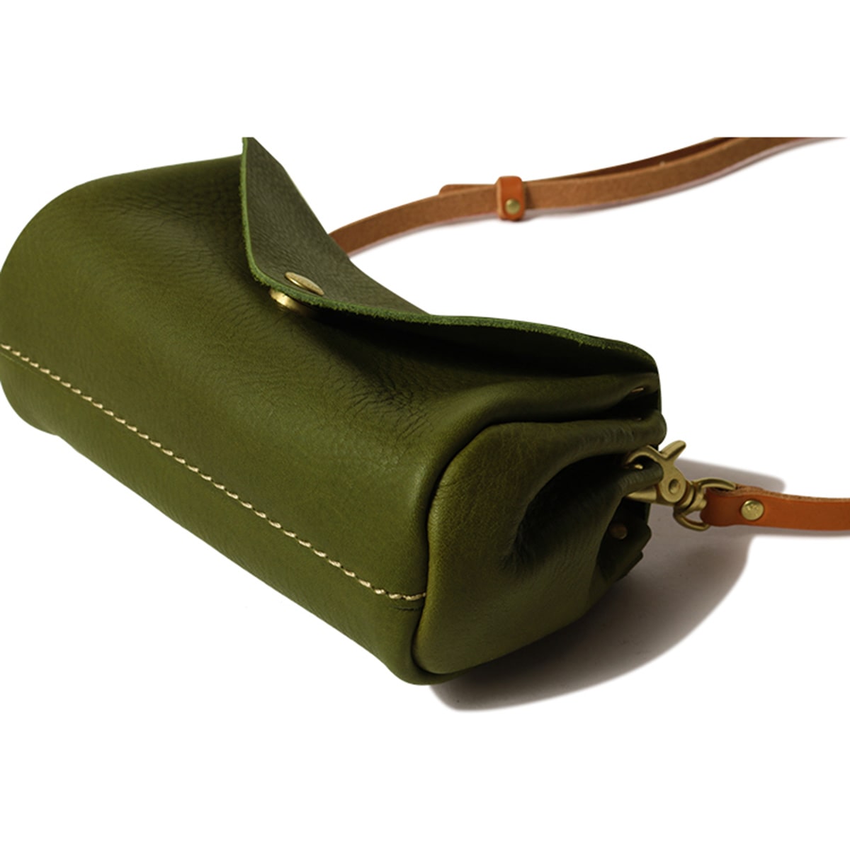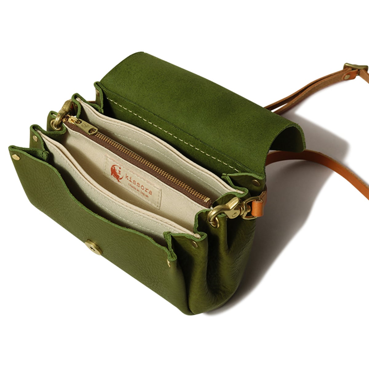 姫路産のオイルレザーを使用。ふんだんにオイルを含んだ革は、もっちりと手に吸い付くようなタッチ感の良さで、経年変化も存分に楽しめます。吟面の程良いシボ感も、革らしさを感じさせてくれるポイント。ショルダーなどの付属には、厚口のヌメを贅沢に一枚使いしています。