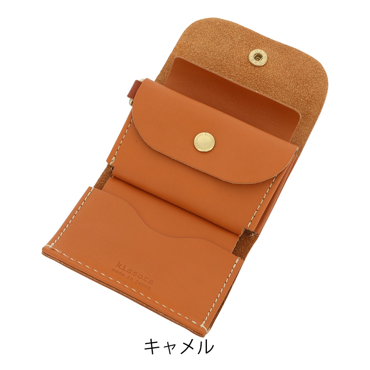 仕様:スナップボタン式開閉内側:札入れ×1フリーポケット×1スナップボタン式小銭入れ×1カードポケット×1Dカン