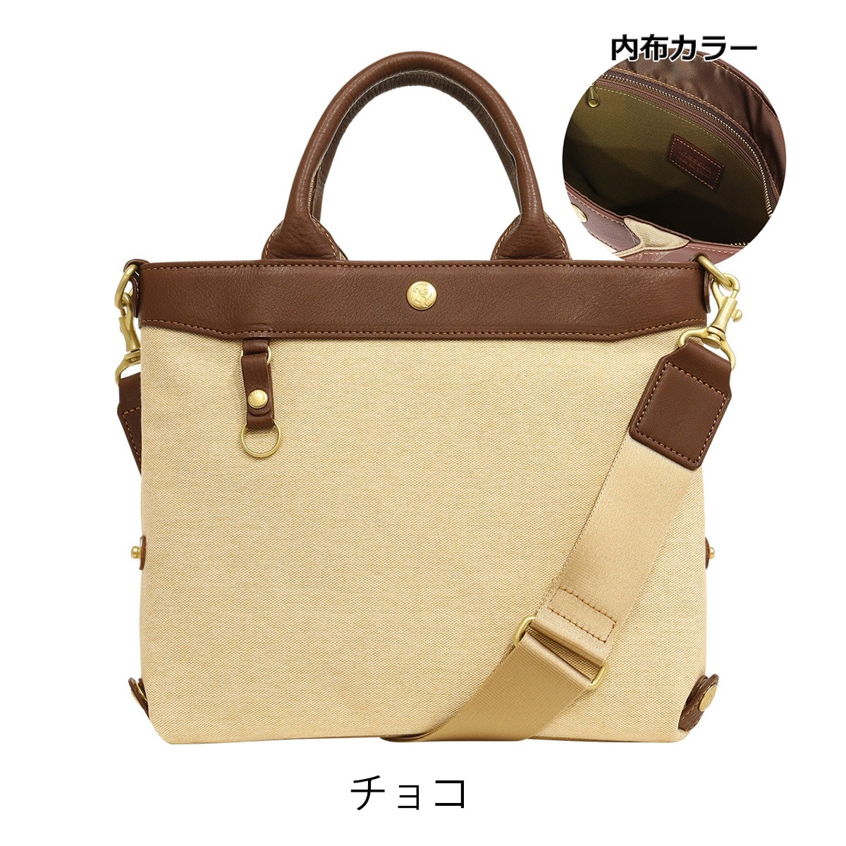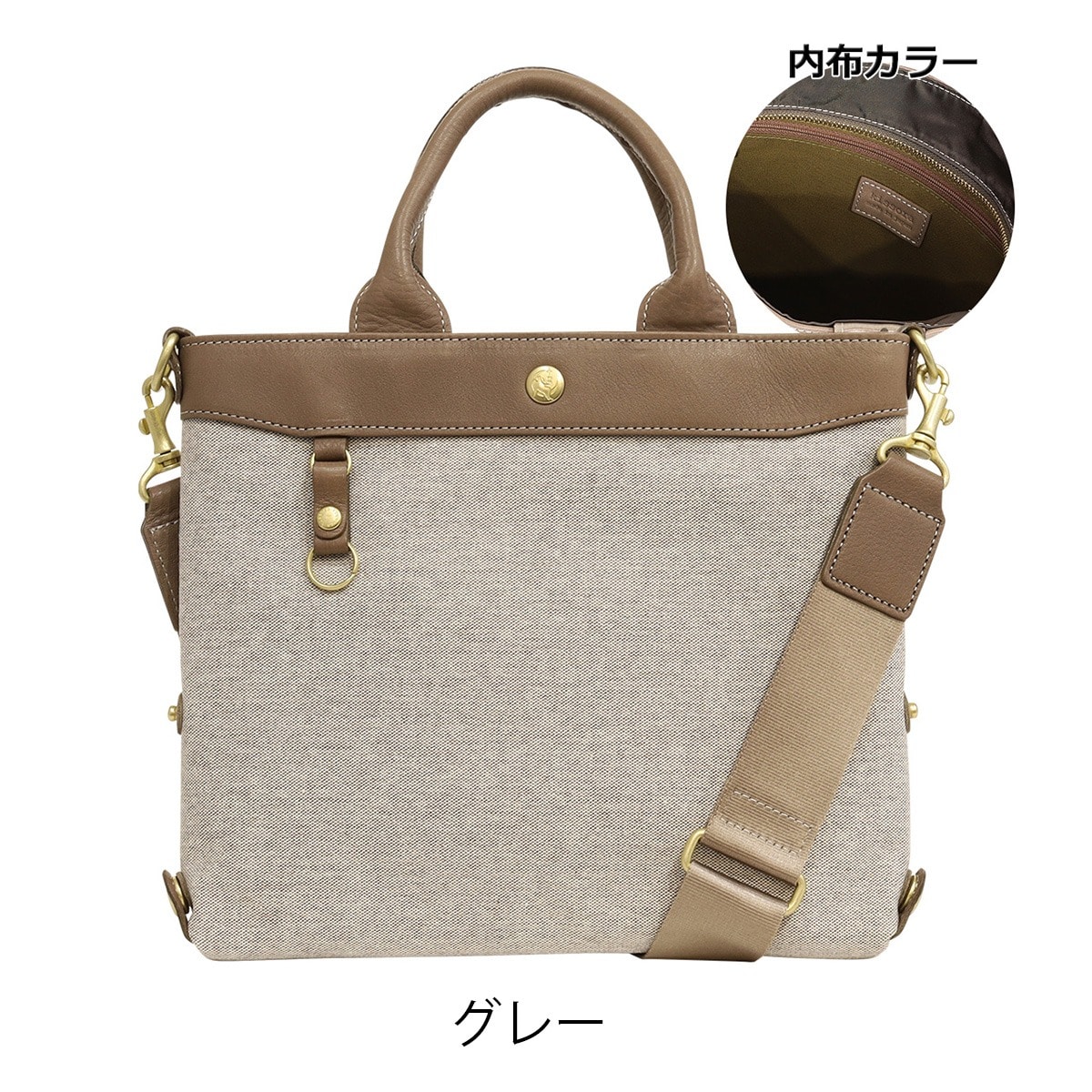 コットンシャンブレー素材に牛革を付属したシリーズ。シャンブレーとは、先染めした色糸をタテ糸に、白い糸をヨコ糸に使用し、平織した生地のことで、布の表面に霜降りのようにポツポツと白糸が現れることで上品さを演出している素材です。